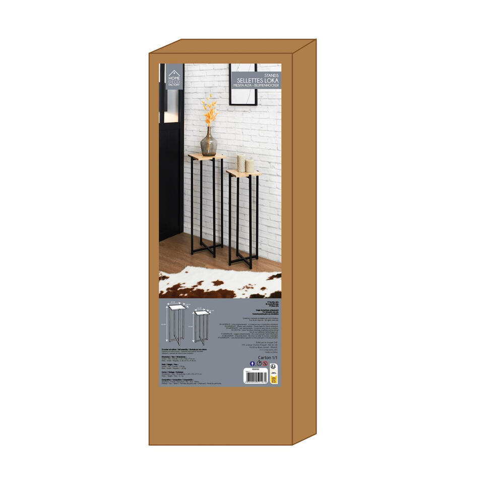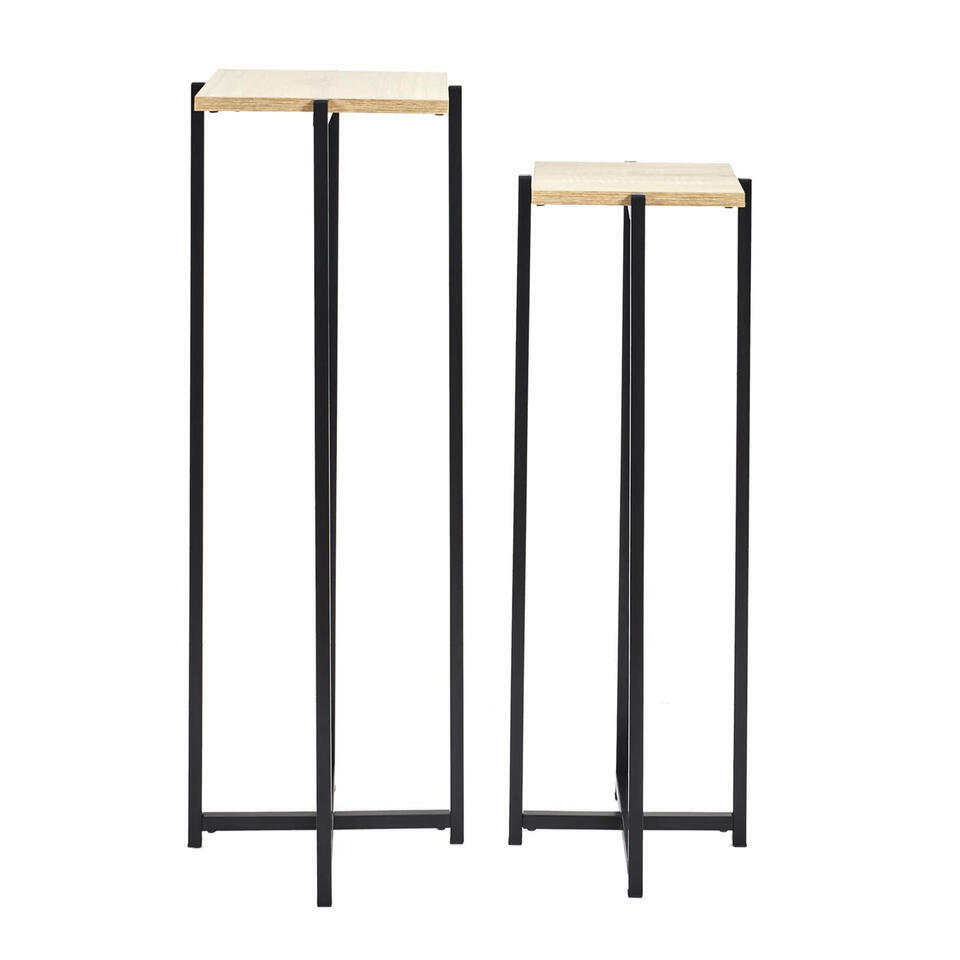 Bijzettafel, 2x stuks van Home deco factory. Met deze set van 2 bijzettafels van Home Deco Factory haal je stijl en functionaliteit in huis. De tafels hebben een houten tafelblad gecombineerd met een stevig metalen frame. Dankzij de twee verschillende hoogtes (90 cm en 75 cm) zijn ze ideaal als bijzettafel, plantentafel of decoratieve tafels in de woonkamer, hal of slaapkamer.