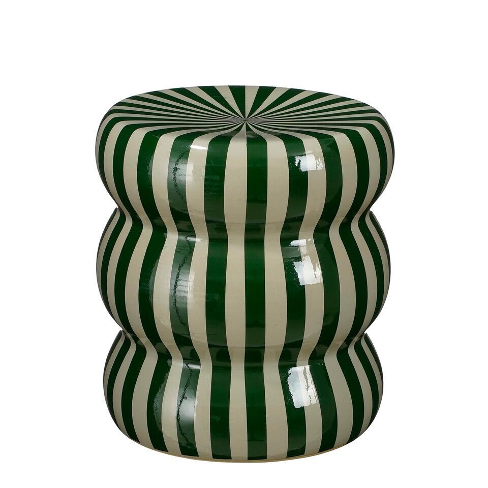 De ronde vormen en de gestreepte print van de Skipper bijzettafel van Mica Decorations vallen meteen op! Hierdoor is het een echte blikvanger en past hij perfect in een eclectisch interieur. Trendy!