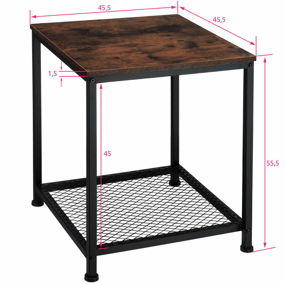 tectake Bijzettafel Derby 45,5x45,5x55,5cm, Industrieel Hout Donker, Rustiek