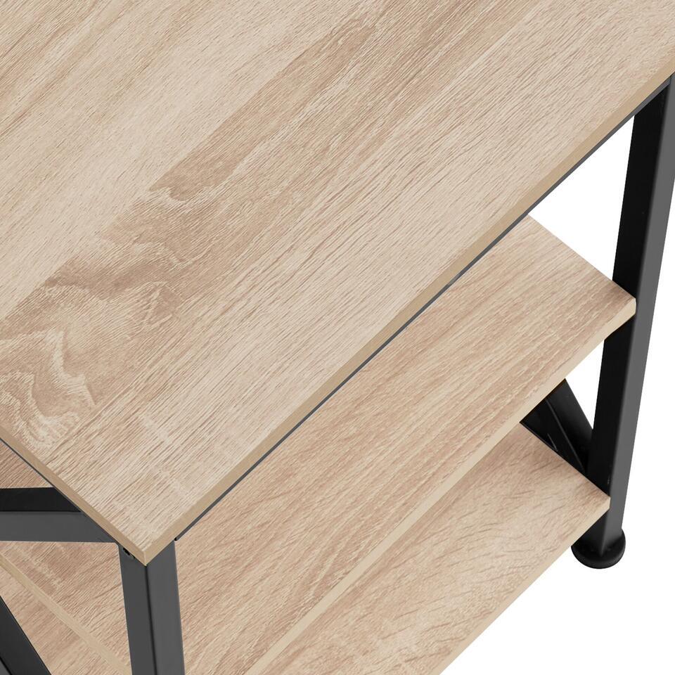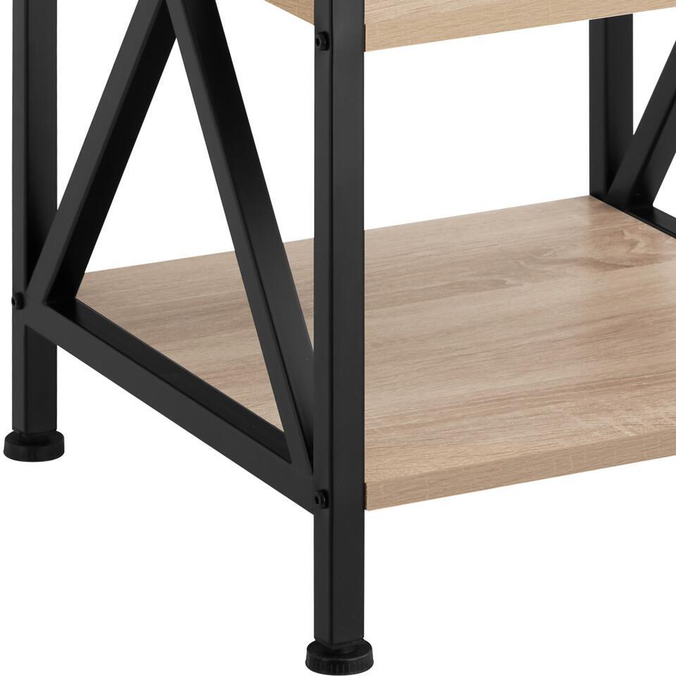 De massieve bijzettafel Nottingham geeft je huis een vleugje rustieke charme. De edele houtlook en het zwarte stalen frame met de kenmerkende diagonale stutten zorgen voor een harmonieus, aantrekkelijk contrast. Drie niveaus zijn perfect als praktische opbergruimte of om favoriete voorwerpen naar voren te brengen. Met zijn vierkante vorm en zijn kleine afmetingen is deze veelzijdige bijzettafel perfect voor voorheen ongebruikte hoeken, en met zijn onopvallende uitstraling past hij gemakkelijk in elke bestaande woonstijl.