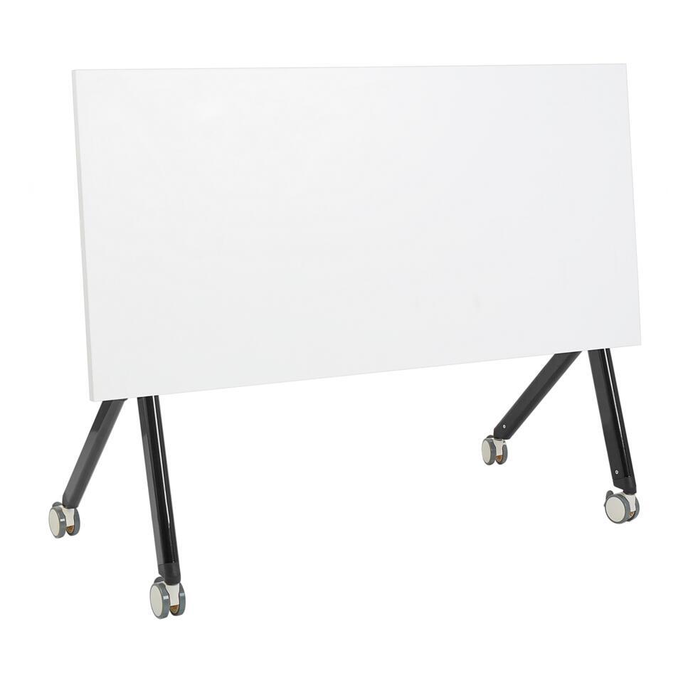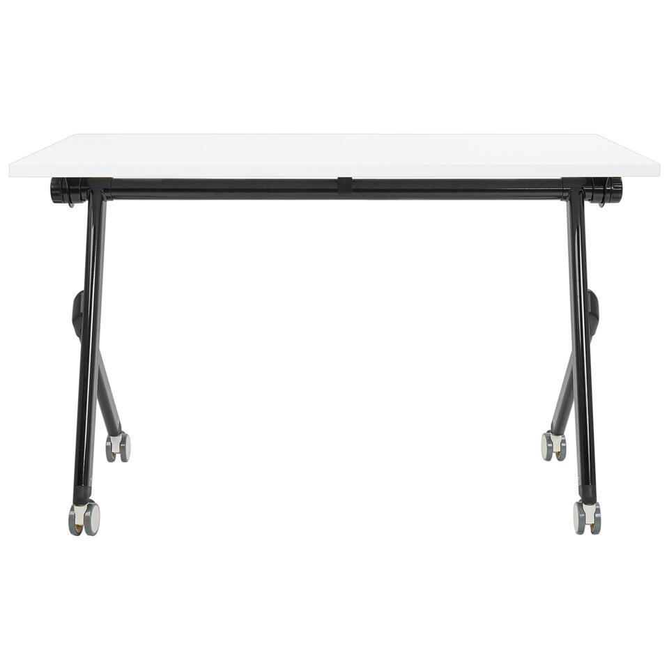 Opvouwbaar bureau met metalen frame. Ontdek de perfecte mix van functionaliteit en mobiliteit en upgrade je kantoorruimte met dit inklapbare bureau. Met een handig inklapbaar blad kan dit bureau moeiteloos worden opgeborgen als het niet wordt gebruikt, waardoor het ideaal is voor compacte ruimtes. Hij is uitgerust met vergrendelbare wielen waardoor hij stabiliteit en veelzijdigheid biedt, zodat je gemakkelijk kunt verplaatsen en vastzetten als dat nodig is. Dit bureau is ideaal voor thuiskantoren en andere werkruimtes en zorgt voor een praktische en stijlvolle werkplekoplossing.
