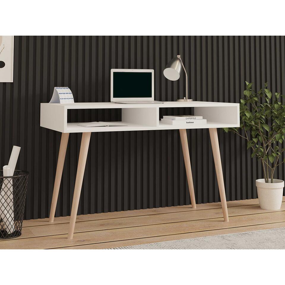 Met zijn strakke en moderne ontwerp voegt ons bureau een vleugje elegantie toe aan elke kamer. De effen witte kleur geeft het een tijdloze uitstraling die moeiteloos past bij elk interieur, of het nu voor je thuiskantoor of een studentenwoning is.