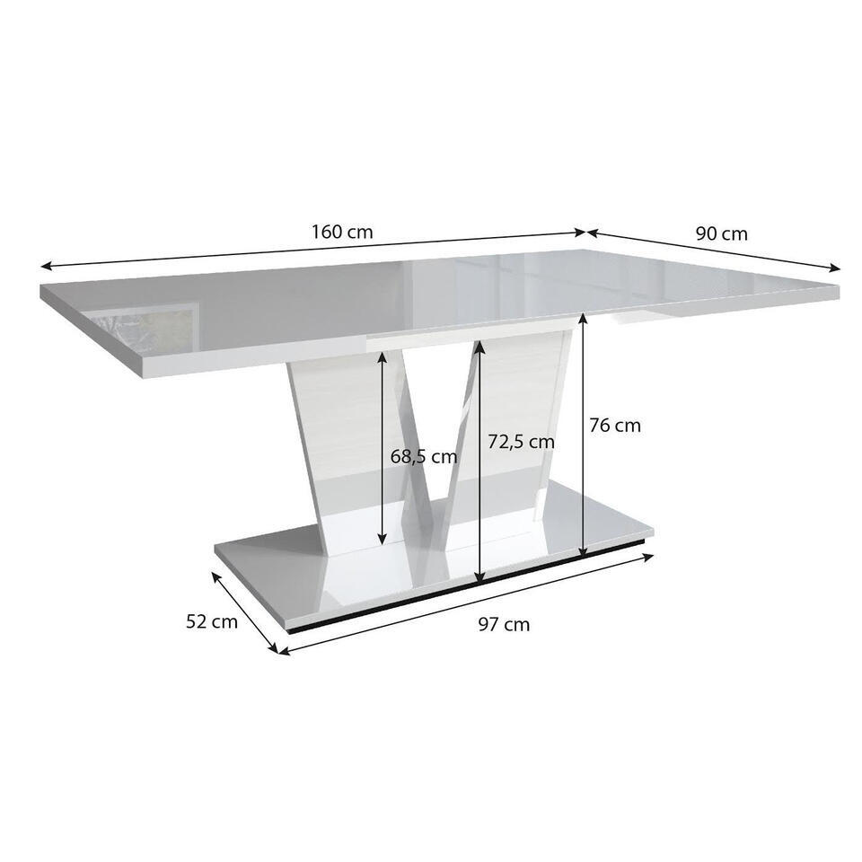 Meubella - Eetkamertafel Violin - Hoogglans Wit - 160 cm