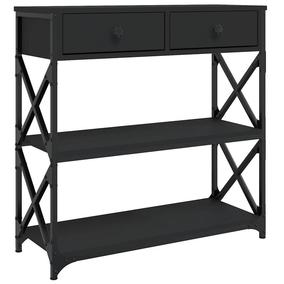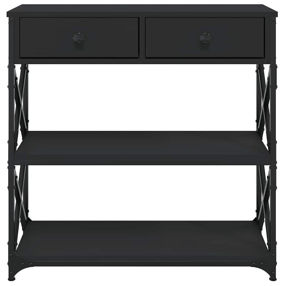 vidaXL - Wandtafel met 2 lades 2 schappen - Zwart - Bewerkt hout - 75x28x75 cm
