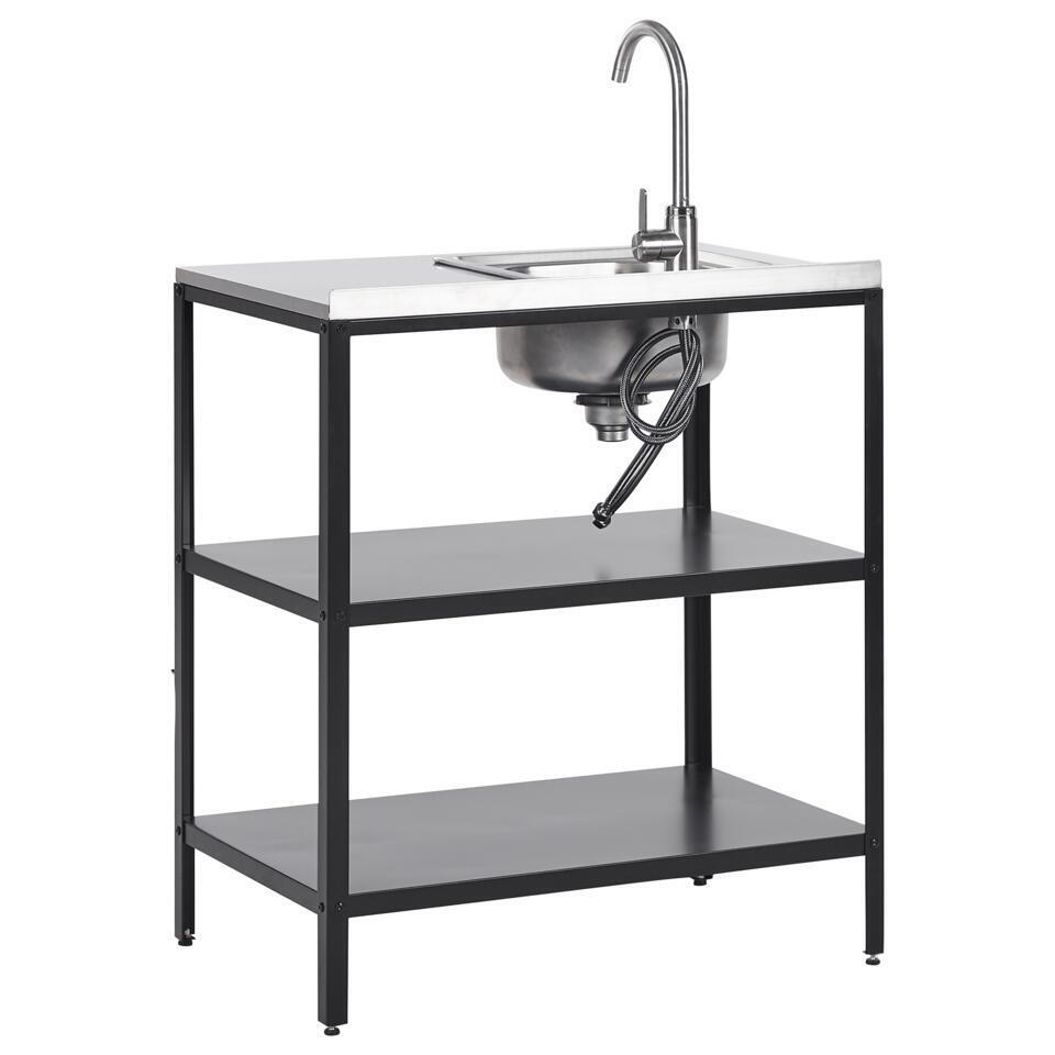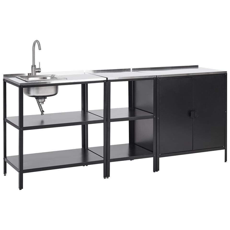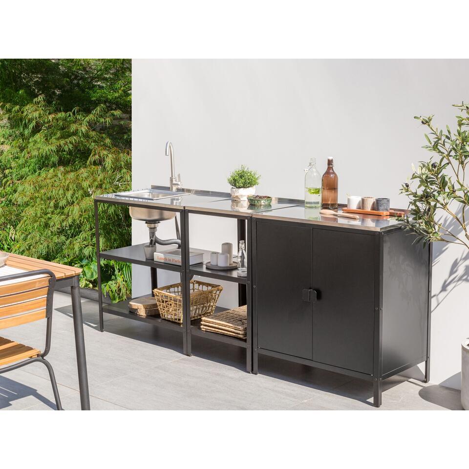 VILAMA - Tuin kookeiland met spoelbak - Zwart - 3-delig - RVS