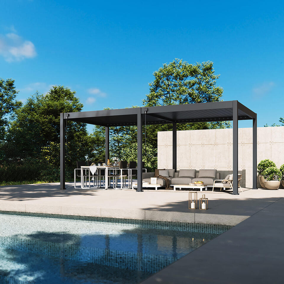 Je Orion Deluxe pergola uitbreiden met accessoires? Dat kan! Met het Pull Down Zijscherm of het Louvre Shutter paneel zit je heerlijk in de schaduw en beschut tegen de wind. Daarnaast zorgen deze accessoires ook voor meer privacy. Door het unieke ontwerp bevestig je het zijscherm en het paneel volledig geïntegreerd in jouw pergola.