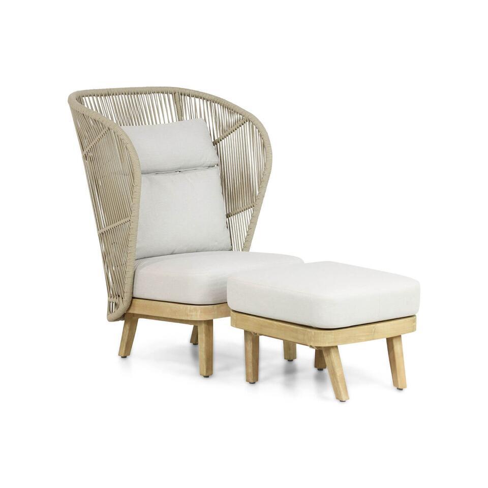 Coco Napoli bistroset 2-delig De Coco Napoli bistroset is een fraai ontworpen en comfortabele bistroset. De Coco Napoli bistroset heeft een mooie midgrey-kleurige rugleuning, gemaakt van rope. Door het rope te combineren met hout, krijgt de loungeset een moderne, maar toch warme uitstraling. Deze loungeset is voorzien van goedgevulde kussens, in een mooie lichte tint. Hierdoor kun je in deze loungeset heerlijk tot rust komen. In de Coco Napoli serie hebben we ook een bijzettafel, zodat je jouw bistroset prachtig kunt uitbreiden. Ook hebben wij de Coco Almeria serie, deze past perfect bij de Coco Napoli serie en bestaat uit o.a. een dining tuinstoel, een dining tuintafel en een loungeset. Je kunt ook jouw eigen loungeset samenstellen uit onze grote collectie tuinmeubelen. Neem gerust contact met ons op over de mogelijkheden of kom eens langs in één van onze megastores. Wij adviseren je graag! De Coco Napoli bistroset 2-delig bestaat uit: * 1 x Coco Napoli lounge tuinstoel * 1 x Coco Napoli lounge voetenbank Eigenschappen Coco Napoli bistroset De Coco Napoli loungeserie is één van de nieuwste series uit de grote collectie van Tuinmeubelshop. De Coco Napoli lounge tuinstoel is omspannen met rope. Het rope dat gebruikt wordt binnen de collectie van Tuinmeubelshop is een polyester touw dat speciaal ontwikkeld is voor buitengebruik. Naast het feit dat dit materiaal een zeer prettig zitcomfort biedt, heeft het ook als voordeel dat het onderhoudsarm is. Het rope is namelijk kleurvast en door de speciale coating die is aangebracht, ook heel snel droog. Rope is makkelijk schoon te maken met groene zeep of met de Multi Surface cleaner van het merk Garden Collections. Het pootstel is gemaakt van eucalyptus hout. Eucalyptus hout is een hardhout soort, dat geschikt is voor buiten, maar kan wel gaan verkleuren en kleine scheurtjes gaan vertonen. Eucalyptus hout is een zachtere houtsoort dan teakhout. Het heeft daarom de voorkeur om de stoel in de winter onder een afdak of in een schuur te plaatsen.