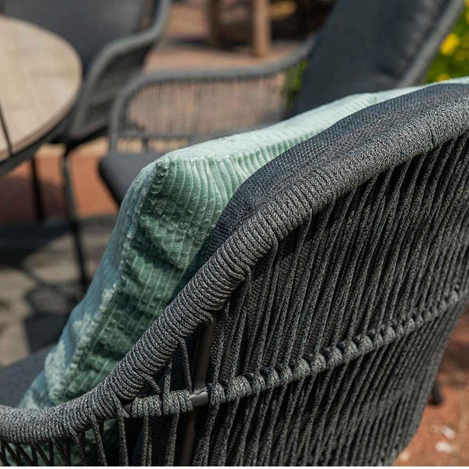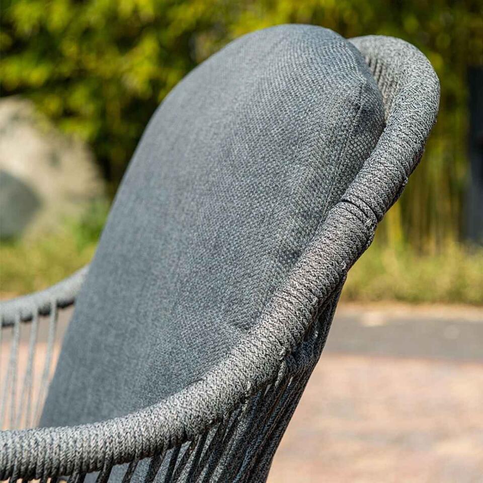 De Yima – Zadar tuinset is een mooie eyecatcher voor iedere tuin. De Yima heeft een rond lopende rugleuning en een frame afgewerkt met touw. De Zadar tuintafel is vervaardigd uit teakhout en een robuust X-vormig onderstel.
