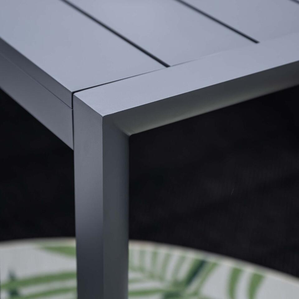 De Adana tuintafel is vervaardigd uit een onderhoudsvrij en weerbestendig aluminium frame met een stevige poedercoating. Wanneer de tuinset geleverd wordt, dienen alleen nog de tafelpoten gemonteerd te worden. Dit is eenvoudig te doen door de meegleverde bevestigingsmaterialen.