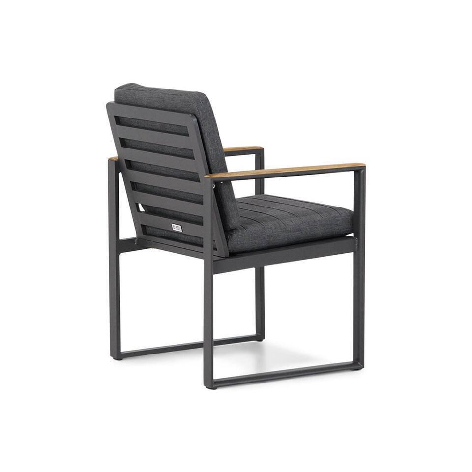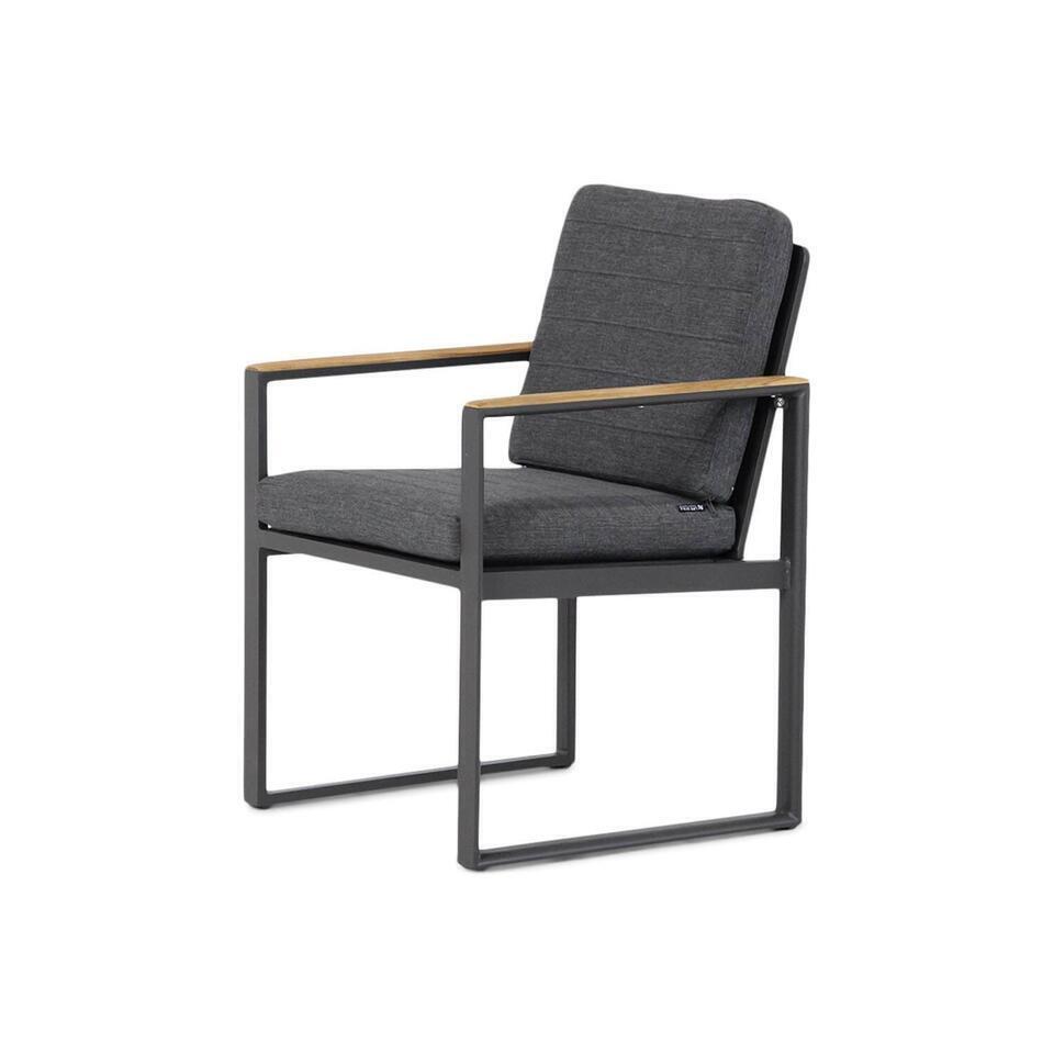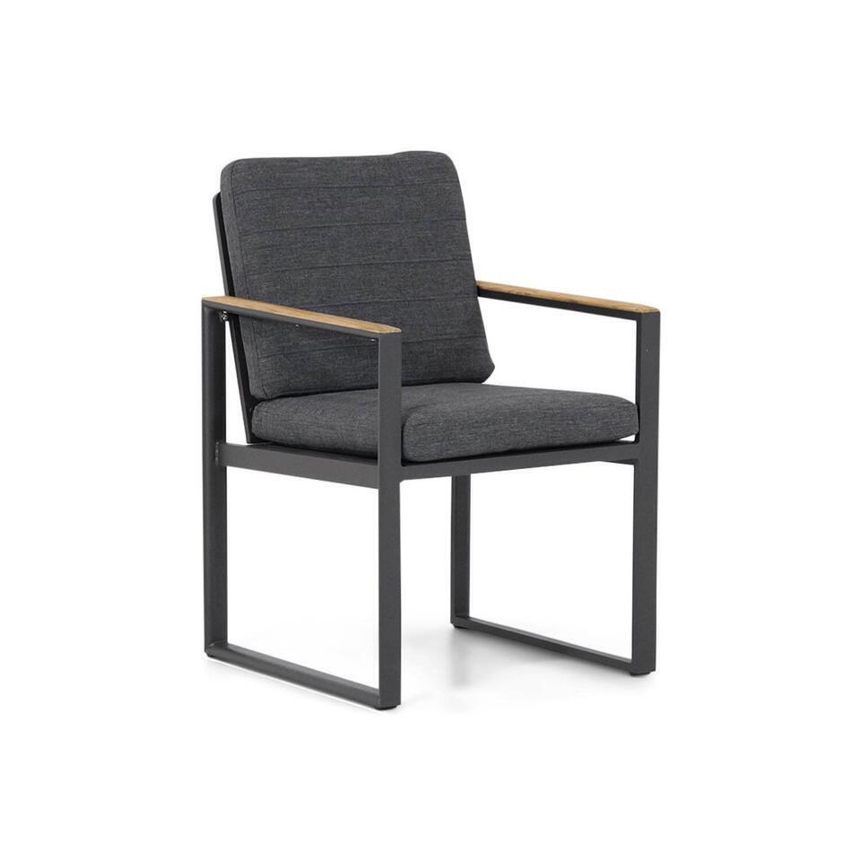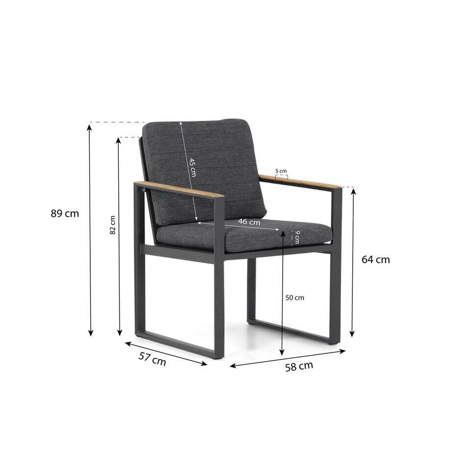 Santika Soray/Borello 100 cm dining tuinset 5-delig Samen comfortabel genieten van de zomer doe je met de Santika Soray dining tuinstoel in combinatie met de Lifestyle Borello dining tuintafel 100 x 100 cm. De Santika Soray dining tuinstoel en de Lifestyle Borello dining tuintafel 100 x 100 cm zijn beide bijna volledig gemaakt van aluminium en zijn dus onderhoudsvrije producten. Het grote voordeel hiervan is dat je meer tijd hebt om te genieten van de heerlijke zomers. Je kunt ook jouw eigen tuinset samenstellen uit onze grote collectie tuinmeubelen. Neem gerust contact met ons op of kom eens langs in één van onze megastores. Wij adviseren je graag! De Santika Soray/Borello 100 cm dining tuinset 5-delig bestaat uit: * 4 x Santika Soray dining tuinstoel * 1 x Lifestyle Borello dining tuintafel 100 x 100 cm Eigenschappen Santika Soray dining tuinstoel met teak armleuning antraciet De Santika Soray dining tuinstoel gemaakt van hoogwaardige en duurzame materialen. Zo is de tuinstoel gemaakt van aluminium. Dit materiaal is roestvrij en hiermee volledig weersbestendig. Ook is het licht van gewicht en hierdoor makkelijk te verplaatsten. Samen zorgt dit voor een duurzame en gemakkelijke tuinstoel, die goed is voor jarenlang buitenzitten.De houten armleuning is van gecertificeerd teakhout. Teakhout is één van de meest duurzame houtsoorten ter wereld en uitstekend geschikt voor buiten gebruik. Doordat het hout zelf een hoog gehalte aan oliën bevat, neemt het hout heel weinig vloeistoffen van buiten op. Ook is de werking van het hout minimaal. Een groot voordeel van een houten armleuning is dat het relatief koel blijft als de tuinstoel in de volle zon staat. Het teakhout is voorzien van het FSC-keurmerk. Dit houdt in dat het hout afkomstig is van volledig duurzaam aangeplante plantages. De kussens die in de Santika tuinstoel geleverd worden zijn gemaakt van een luxe buitenstof en een hoogwaardige vulling. Deze combinatie zorgt voor mede voor de unieke uitstraling en een optimaal zitcomfort.De Santika Soray dining tuinstoel is gemakkelijk schoon te maken met een mild sopje. Het teakhout kan behandeld worden met Garden Collections Teak Protector, waardoor het hout op de bruine kleur gehouden kan worden. Zonder deze behandeling zal het teakhout op een natuurlijke wijze gaan vergrijzen. Heb je nog vragen of zoek je aanvullende informatie over de Tuinmeubelshop collectie? Breng een bezoekje aan één van onze megastores of stel je vragen telefonisch of online. Wij helpen je graag. Eigenschappen Lifestyle Borello dining tuintafel 100 x 100 cm De Lifestyle Borello dining tuintafel 100 x 100 cm is volledig gemaakt van aluminium. Het tafelblad lijkt op hout, maar dit is ook van aluminium. Het pootstel van de Lifestyle Borello dining tuintafel is gemaakt van hoogwaardig, gepoedercoat aluminum. Poedercoaten is een elektrostatisch proces. Hierbij wordt de poeder op het aluminium aangebracht. Dit wordt verhit in een oven. Tijdens het uitharden worden de poederdeeltjes door de warmte eerst vloeibaar, vervolgens stroperig en tenslotte uitgehard tot een mooie, zeer duurzame coating op de tuintafel. De Lifestyle Borello dining tuintafel kan het gehele jaar door in je tuin blijven staan en geeft plaats aan 2 tot 4 personen. De Lifestyle Borello dining tuintafel is ook beschikbaar in de maten 180 x 100 cm en 240 x 100 cm.
