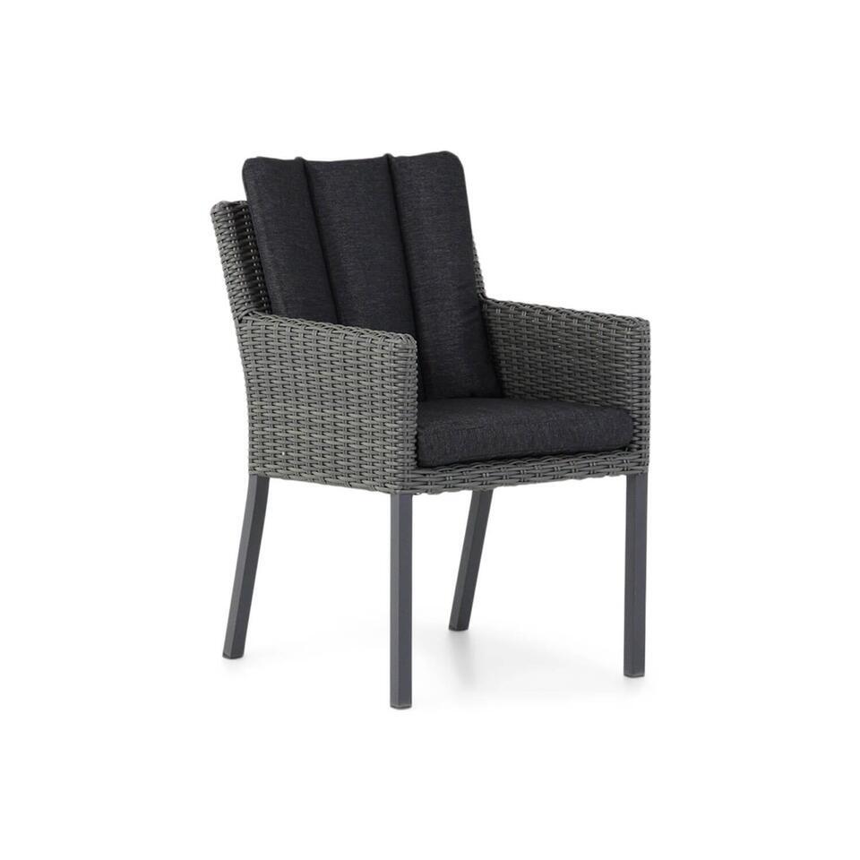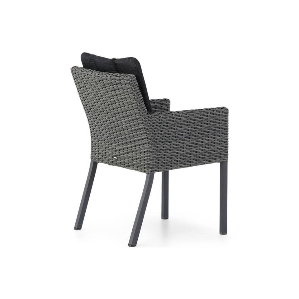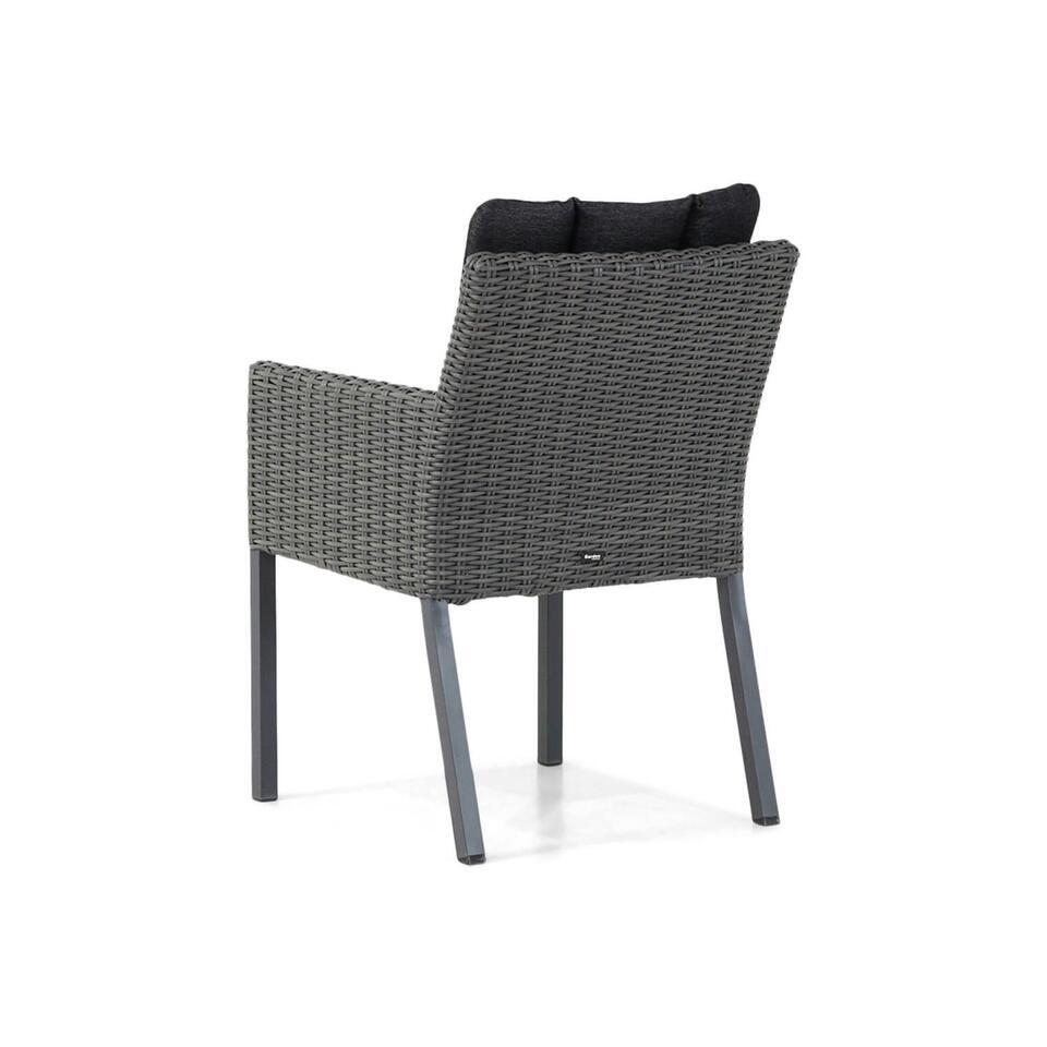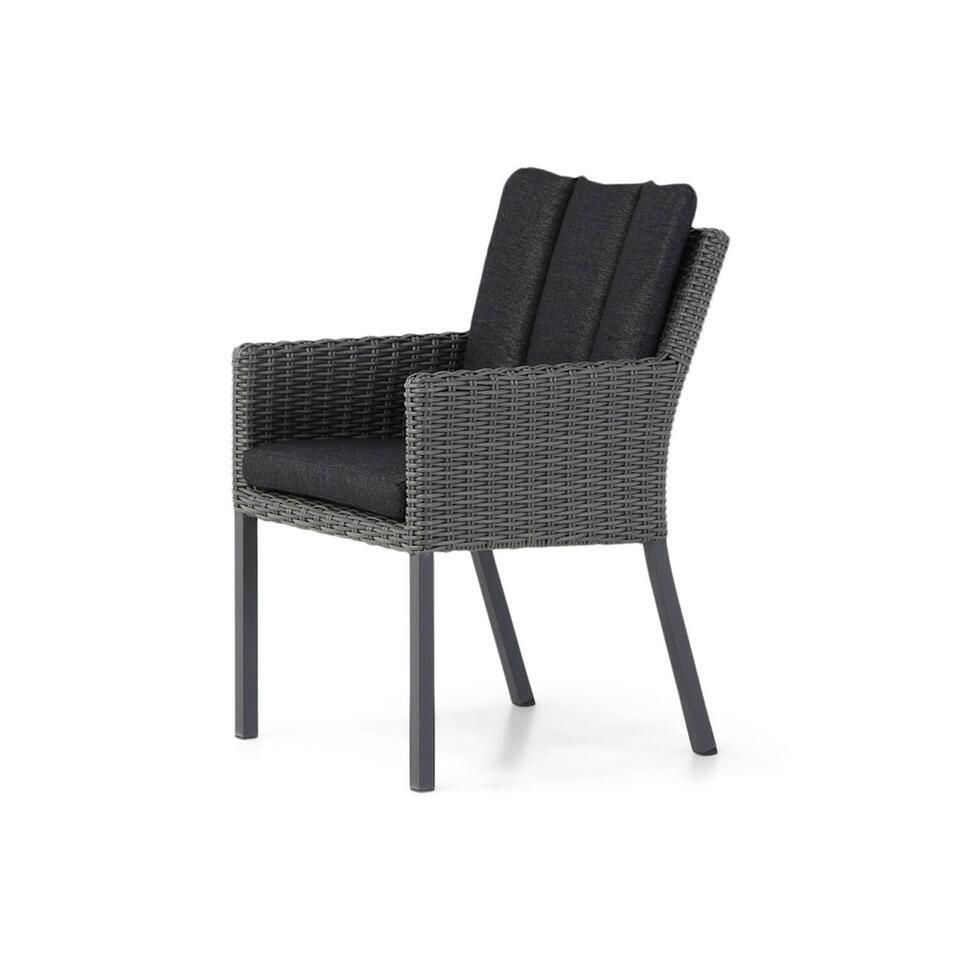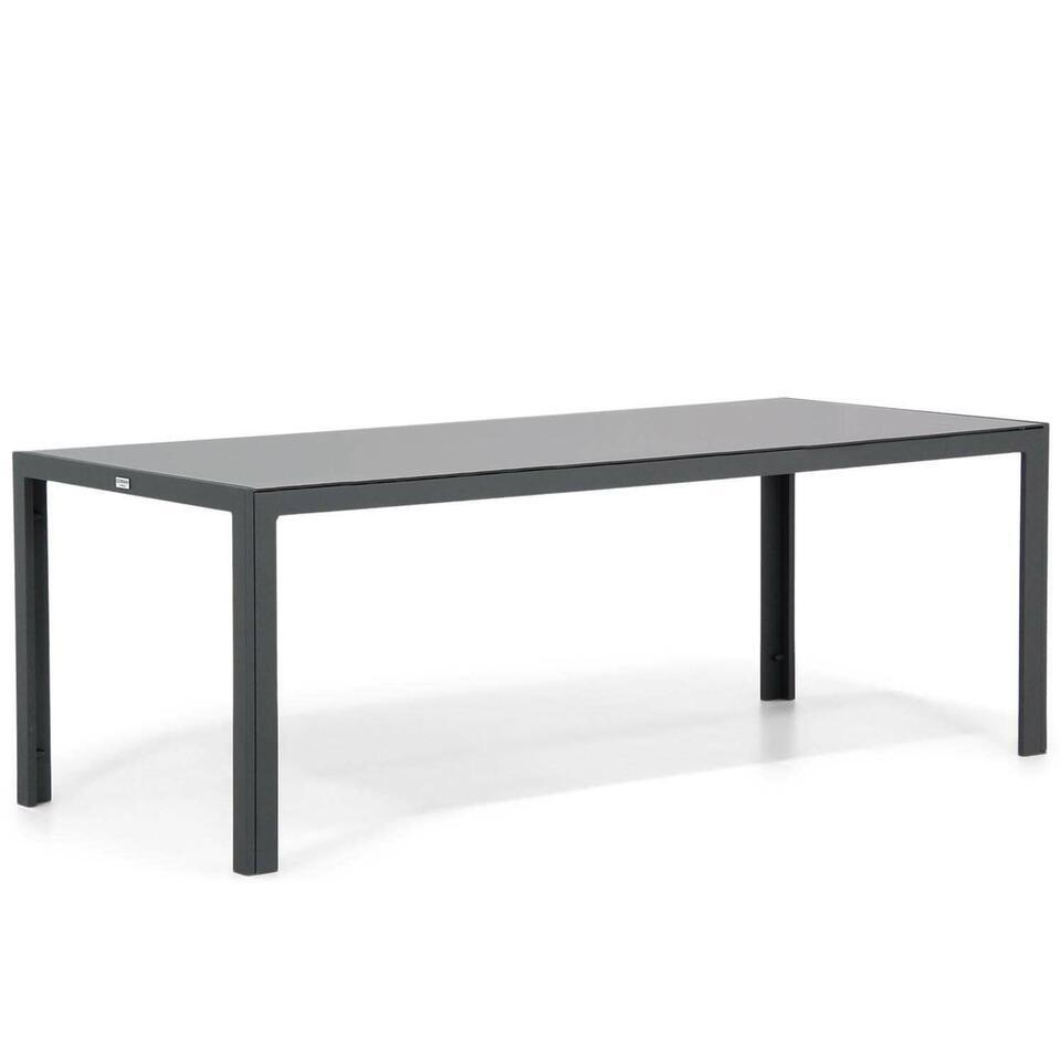 Garden Collections Oxbow/Mondello 210 cm dining tuinset 7-delig Een prachtige combinatie van strak aluminium en sfeervol wicker. Dat is de Garden Collections Oxbow dining tuinstoel in combinatie met de Domani Mondello dining tuintafel 210 x 90 cm. Deze 6-persoons tuinset maakt een stijlvolle en tijdloze indruk en past mooi op elk terras. Naast het mooie ontwerp biedt de Oxbow tuinstoel ook een optimaal zitcomfort. De stoel heeft namelijk een voorgevormde rugleuning en is uitgevoerd met een goed gevuld zit- en rugkussen. Het rugkussen is bovendien voorzien van een tweetal extra stiknaden, waardoor het kussen om je heen vormt. Wil je meer informatie over deze luxe tuinset? Neem contact met ons op of kom langs in één van onze tuinmeubelwinkels. Wij helpen je graag verder! De Garden Collections Oxbow/Mondello 210 x 90 cm dining tuinset 7-delig bestaat uit: * 6 x Garden Collections Oxbow dining tuinstoel off black * 1 x Domani Mondello dining tuintafel 210 x 90 cm Eigenschappen Garden Collections Oxbow dining tuinstoel off black De Garden Collections Oxbow dining tuinstoel bestaat uit een gepoedercoat aluminium frame met daarom een geweven wicker. Poedercoaten is een elektrostatisch proces. Hierbij wordt poeder op het aluminium aangebracht. Dit wordt verhit in een oven. Tijdens het uitharden worden de poederdeeltjes door de warmte eerst vloeibaar, vervolgens stroperig en tenslotte uitgehard tot een mooie, zeer duurzame coating op de tuinstoel. Aluminium heeft de mooie eigenschap dat het niet kan gaan roesten, daardoor is dit materiaal perfect voor buiten. De wicker vlechtdraden hebben een mono core behandeling gehad, dit houdt in dat de draden door en door gekleurd zijn. De wicker vlechtdraad, in de kleur off black, geeft deze tuinstoel een tijdloze uitstraling. Ook is deze kleur met vele andere materialen te combineren, zoals de Domani Mondello dining tuintafel 210x90 cm. De Garden Collections Oxbow dining tuinstoel kan het gehele jaar door buiten blijven staan. De stoel wordt geleverd inclusief zit- en rugkussen. Deze kussens hebben een coating wat ze water- en vuilafstotend maakt. Eigenschappen Domani Mondello dining tuintafel 210 x 90 cm De Domani Mondello dining 6 persoons tuintafel is een aluminium tuintafel met een gehard glazen blad. Aluminium heeft als voordeel dat het licht van gewicht is en onderhoudsvrij. Dit maakt de Domani Mondello dining tuintafel tot een duurzame aanschaf. Het tafelblad is gemaakt van gehard veiligheidsglas, en uitgevoerd in de kleur antraciet. Dit is een hard en sterk materiaal. De Garden Collections Oxbow dining tuinstoel is op hoogte afgestemd met deze tuintafel, zodat de stoel altijd goed onder de tuintafel past. De tafel is eenvoudig schoon te maken met een mild reinigingsmiddel.