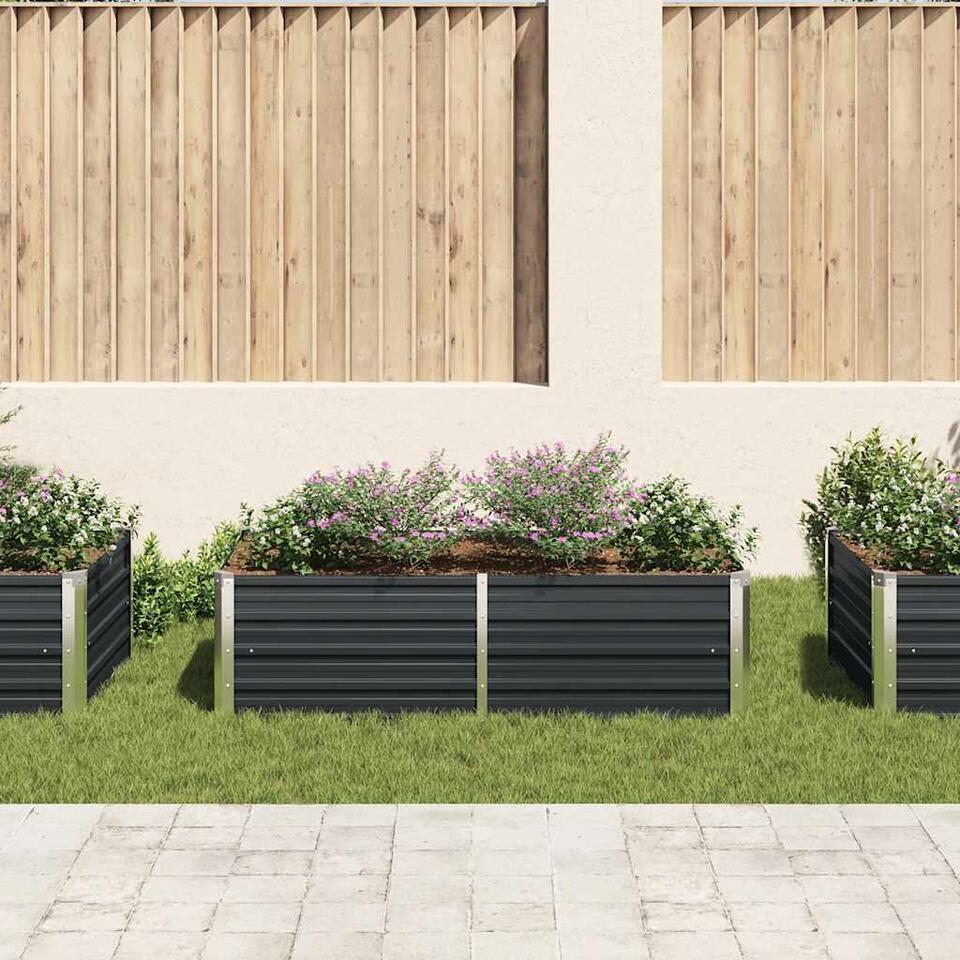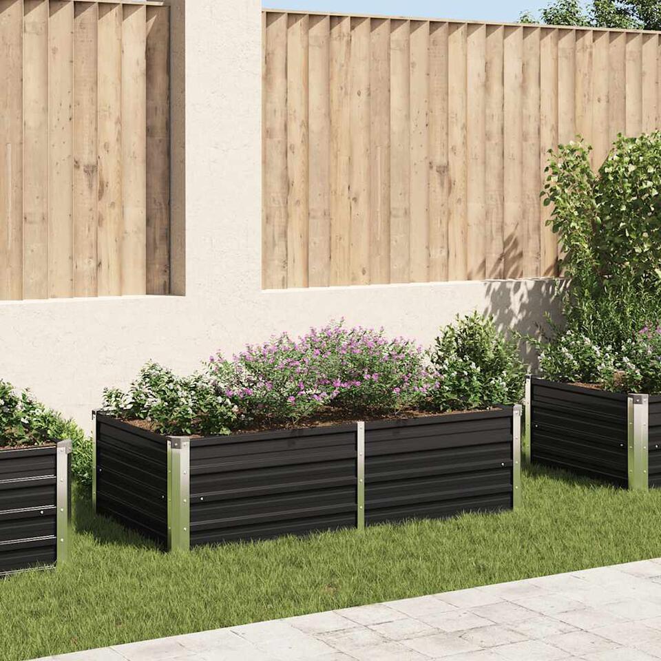 Dit verhoogde tuinbed is erg duurzaam en mooi gemaakt. Hij is diep en wijd genoeg voor een grote hoeveelheid grond en geeft genoeg ruimte voor planten, groenten, kruiden en bloemen. Dankzij het simpele rechthoekige ontwerp zal het een stijlvolle toevoeging zijn aan uw balkon, tuin en patio. Hij is gemaakt van gegalvaniseerd staal en uitgerust met interne steunbeugels, wat hem stevig en duurzaam maakt. De rand van de plantenbak heeft een gevouwen rand zodat er geen scherpe randen zijn.
