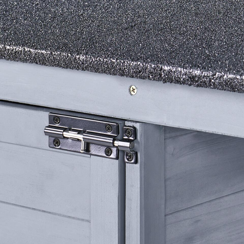 Houten buiten opbergbox. Deze multifunctionele tuinschuur biedt een ideale opslagoplossing voor elke buitenruimte. Hij is gemaakt van stevig sparrenhout en heeft een duurzaam asfaltdak dat bestand is tegen temperatuurschommelingen zonder te barsten, waardoor hij bescherming biedt tegen vocht en schimmel. De schuur heeft ruime planken voor het opbergen van gereedschap, potten of tuingereedschap, en veilige deuren met vergrendeling voor extra veiligheid.