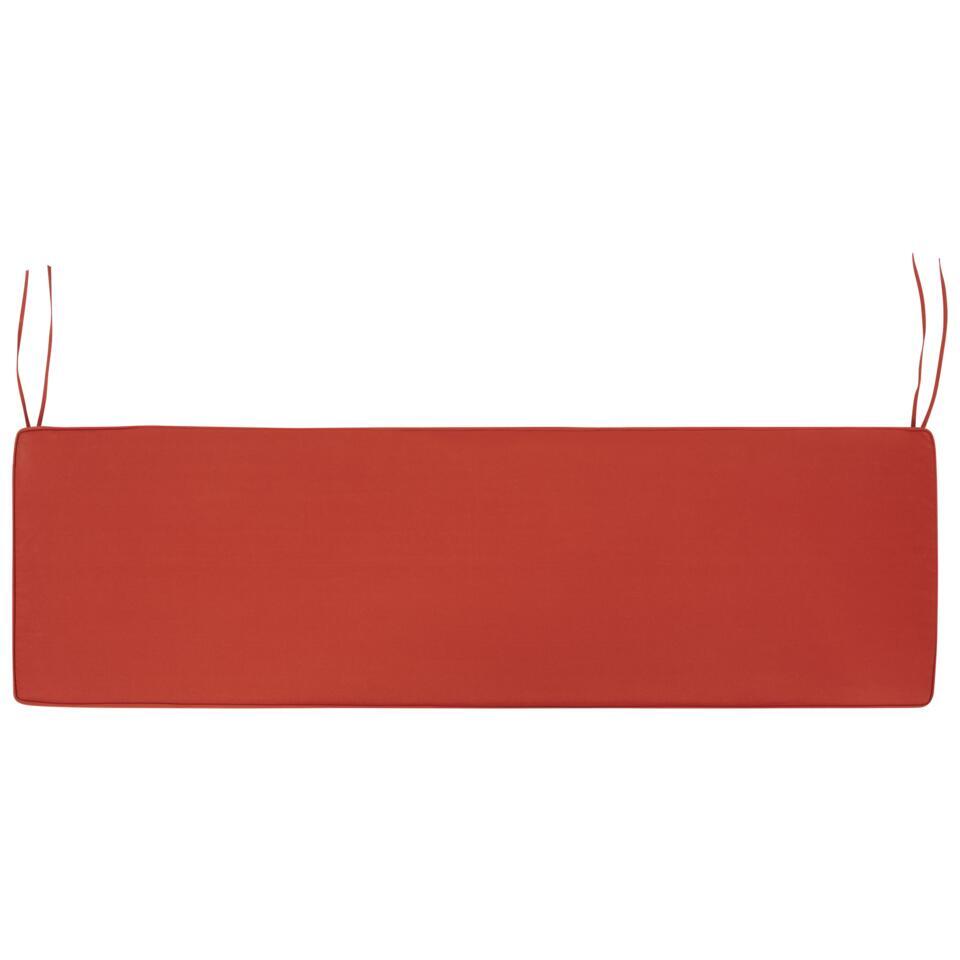 Massief acaciahouten terrasbank met opbergvak en zitkussen. Geef je buitenruimte een extra dimensie met deze houten bank. De tuinbank is gemaakt van hoogwaardig acaciahout, gemakkelijk te onderhouden. De bank is voorzien van een ruim opbergvak, verborgen onder de zitting. Het kan worden gebruikt om onnodig tuingereedschap of meubelhoezen op te bergen. Het stuk heeft een zitkussen in een mooie, complementaire rode kleur. Het minimalistische, Scandinavisch geïnspireerde ontwerp maakt het een perfecte aanvulling op elke tuin.