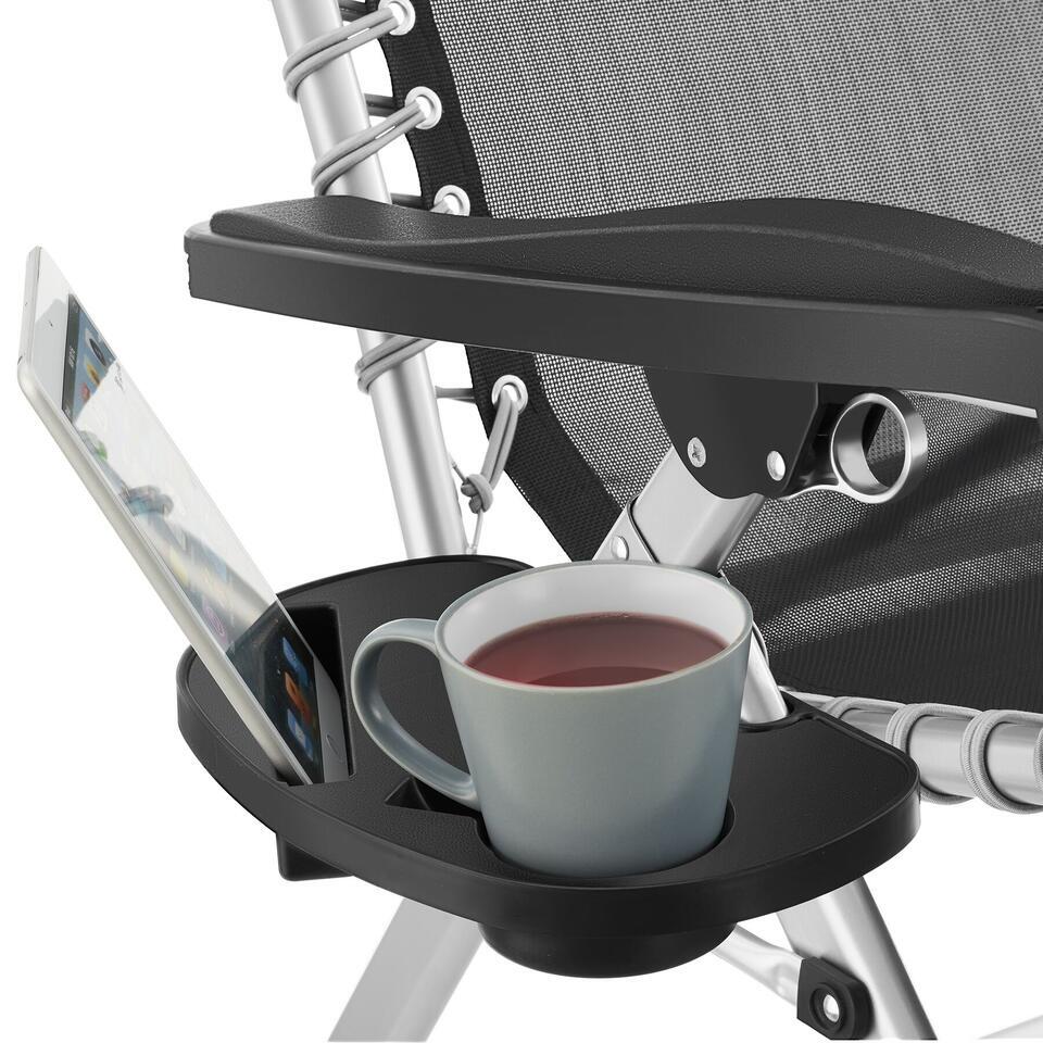 - Praktisch tafeltje met uitsparingen, ideaal voor een drankje en je mobieltje