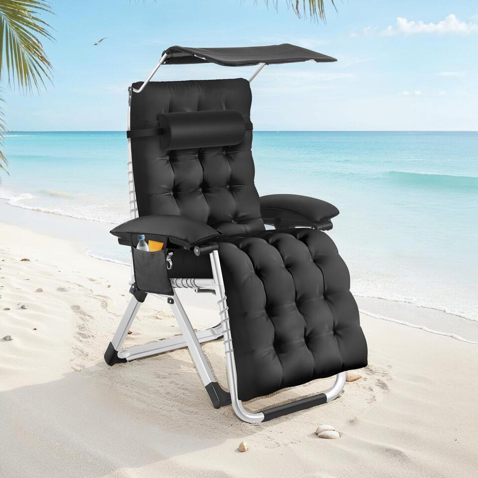 tectake Ligstoel Cloud II met zonnekap, opvouwbaar, Zwart