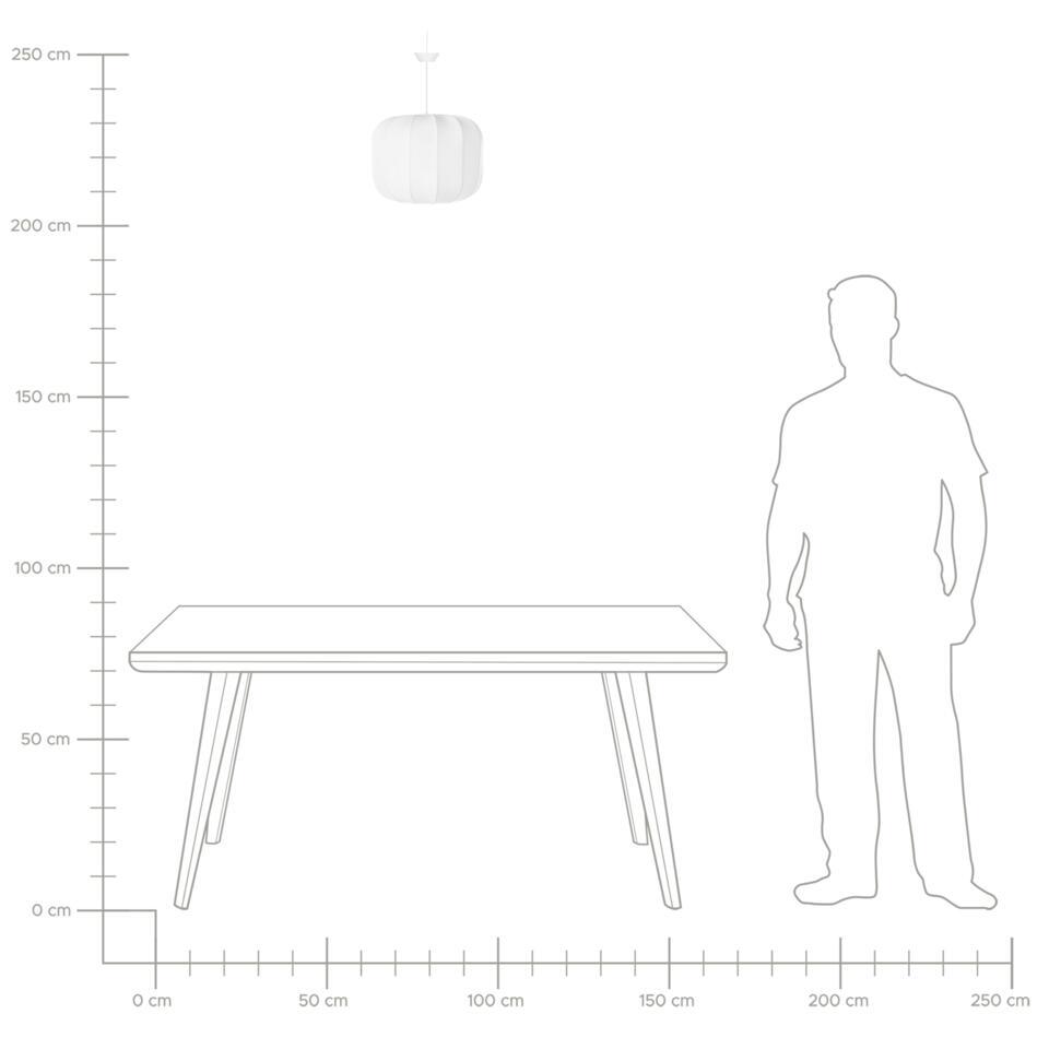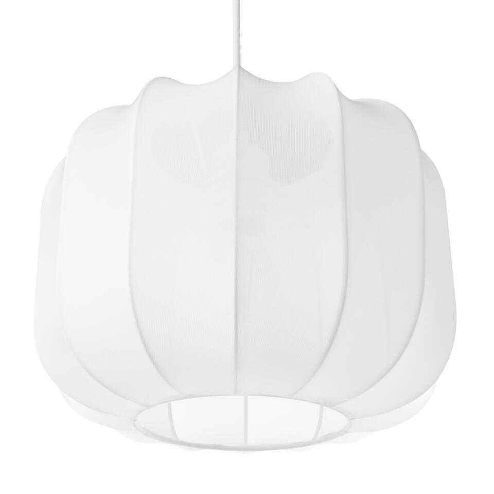 Hanglamp met nylon lampenkap. Maak je eetkamer af met deze minimalistische hanglamp met een zacht afgeronde, op een lantaarn geïnspireerde vorm. De lamp heeft een strakke witte kap en zorgt voor een zachte, diffuse verlichting, perfect om een warme en uitnodigende sfeer te creëren. Het eigentijdse ontwerp past in moderne en Scandinavische interieurs, terwijl de ingetogen elegantie een stijlvol middelpunt vormt boven elke eettafel. Deze lamp is ideaal voor gezellige etentjes met het gezin of stijlvolle bijeenkomsten en combineert functionaliteit met stijlvolle elegantie.