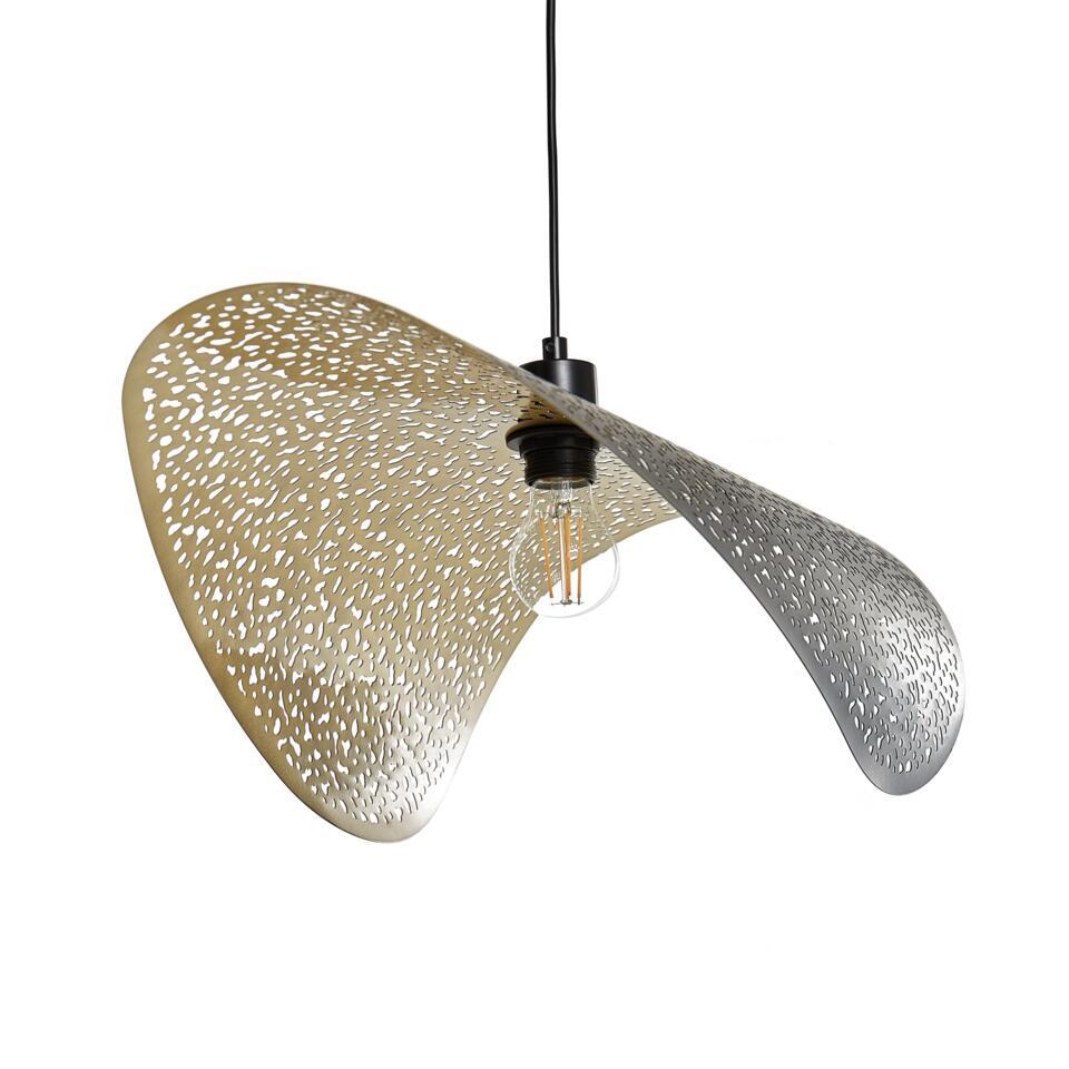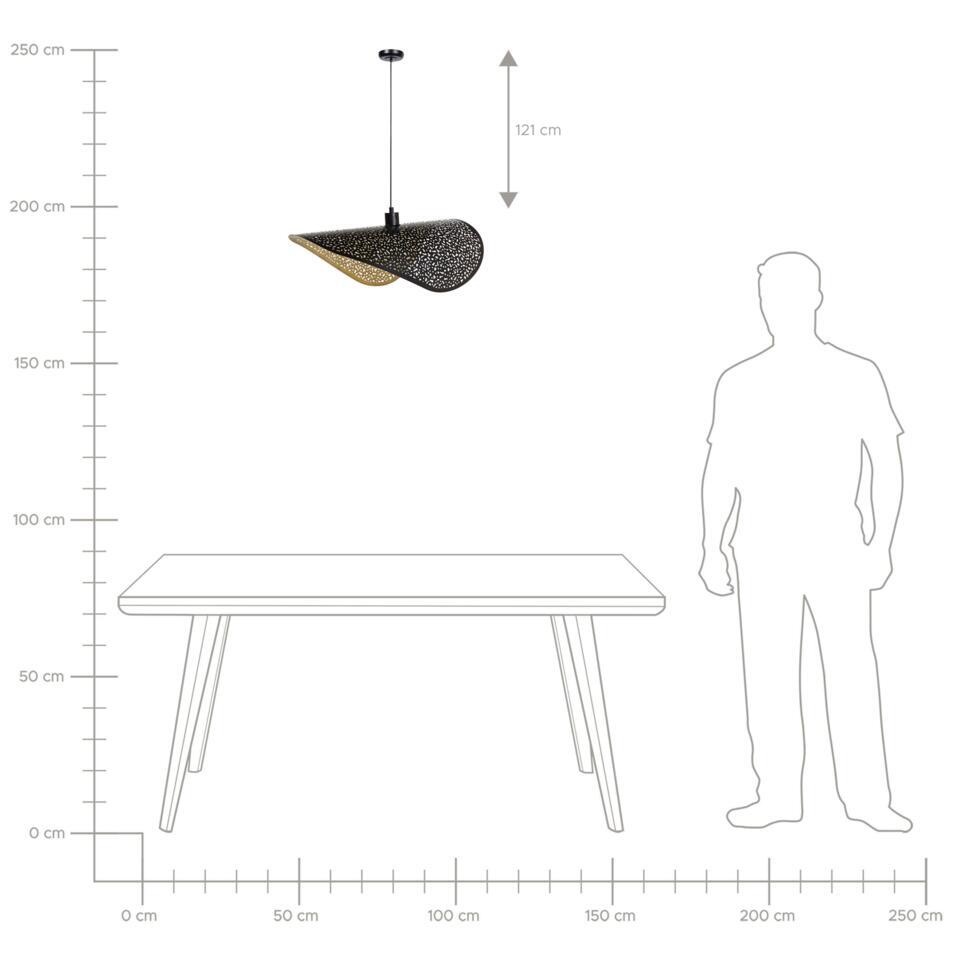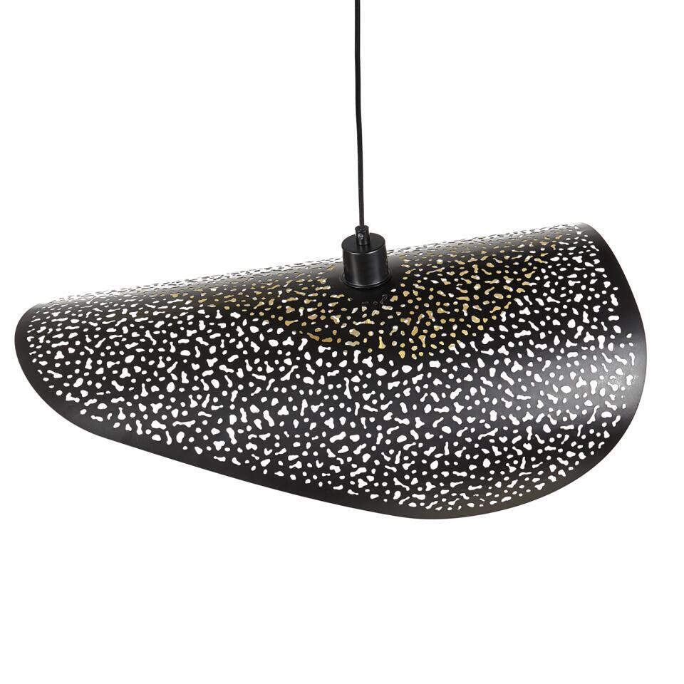 Hanglamp met ijzeren kap. Geef je kamer een gedurfde en moderne flair met deze unieke hanglamp. Met een donkere, geperforeerde metalen kap creëert deze lamp een opvallend spel van licht en schaduwen dat diepte en karakter toevoegt aan elke kamer. Ideaal voor eetkamers, woonkamers of gangen, het sculpturale ontwerp en de elegante afwerking maken het een opvallend middelpunt dat de hedendaagse inrichting met gemak verbetert.