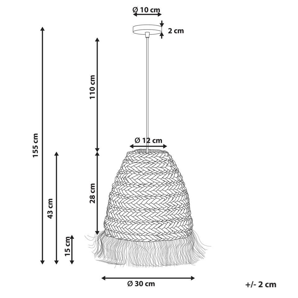 Hanglamp met franje. Deze unieke hanglamp met decoratieve franjes brengt warmte en karakter in elke kamer met zijn zachte, uitnodigende licht. De kap, gemaakt van natuurlijk zeegras, geeft een boho vibe met zijn organische textuur. Het handgemaakte geweven ontwerp voegt een opvallend accent toe, waardoor het een perfecte keuze is voor je eetkamer of woonkamer.