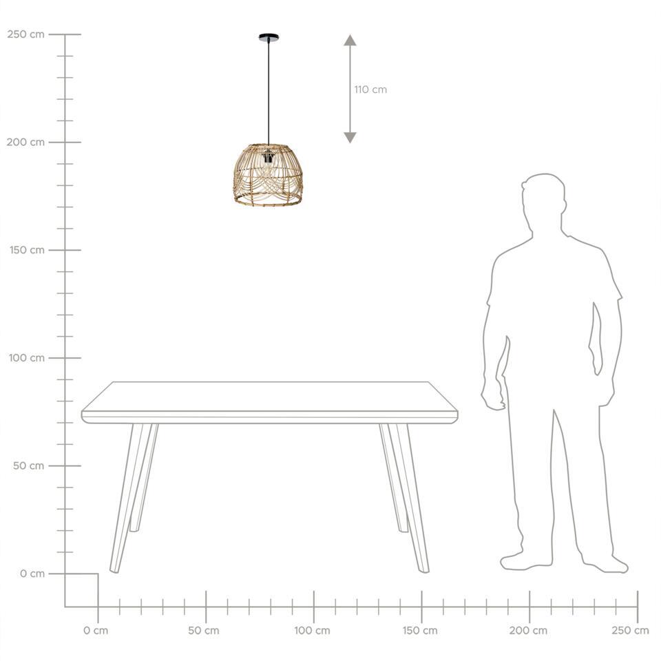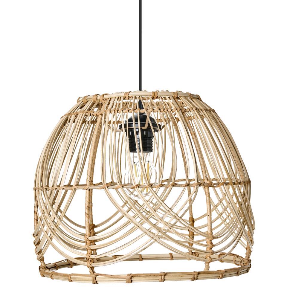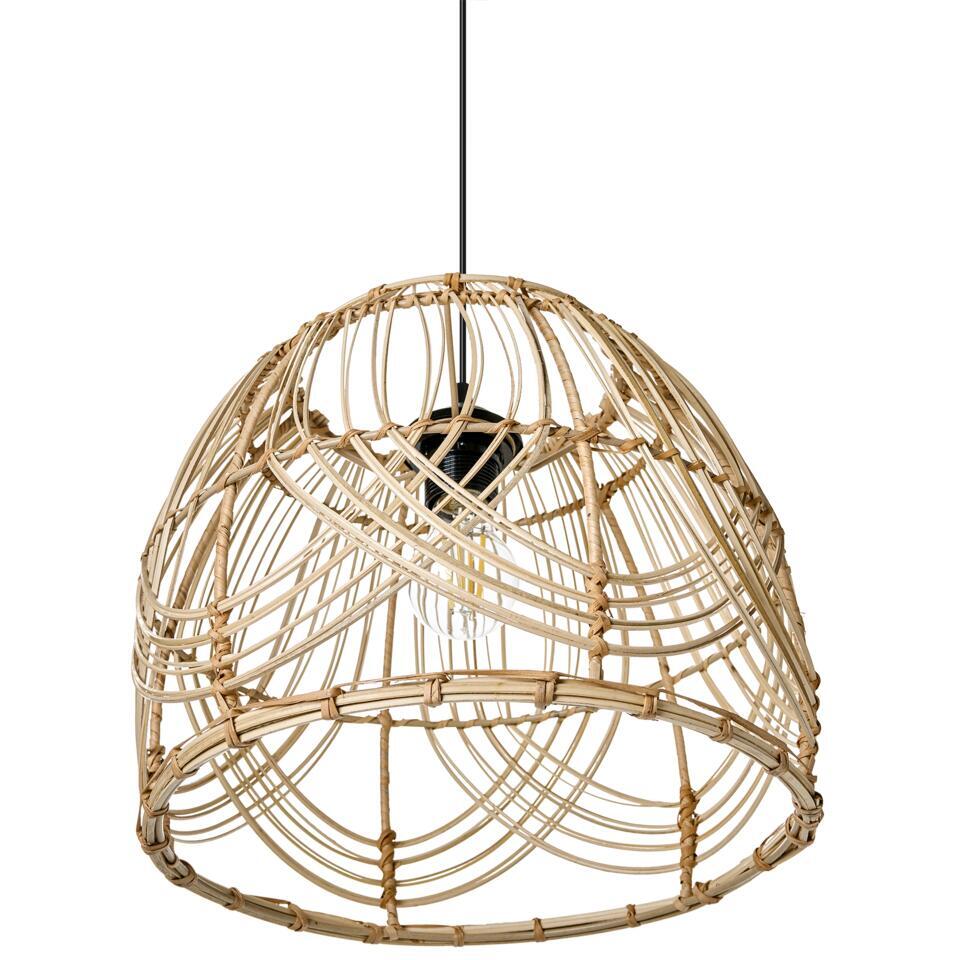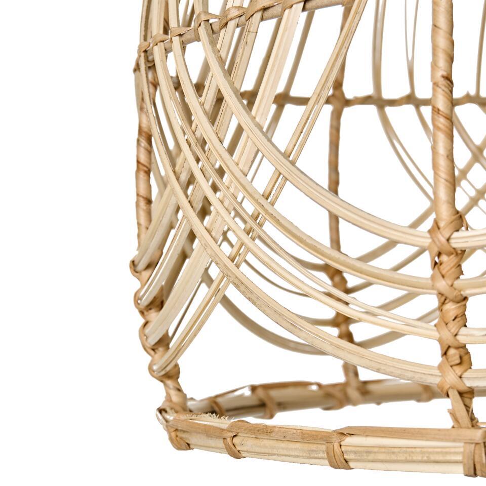 Hanglamp met rotan kap. Deze elegante, handgemaakte hanglamp is de perfecte toevoeging aan elke ruimte met boho-inspiratie. De lamp is gemaakt van hoogwaardig rotan in een warme tint en verspreidt een zacht, gelijkmatig sfeerlicht. De lamp heeft een ijzeren frame voor duurzaamheid en is eenvoudig te installeren. Het open ontwerp voegt een vleugje natuurlijke en organische charme toe, waardoor het een stijlvolle keuze is voor moderne interieurs.