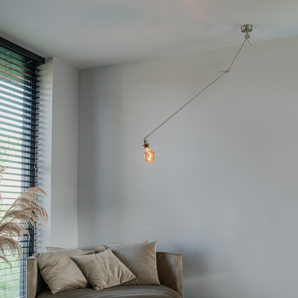 Strakke moderne stalen pendel geschikt voor alle kappen met E27 bevestiging. Door het basic design is de hanglamp goed te combineren met verschillende stijlen lampenkappen.