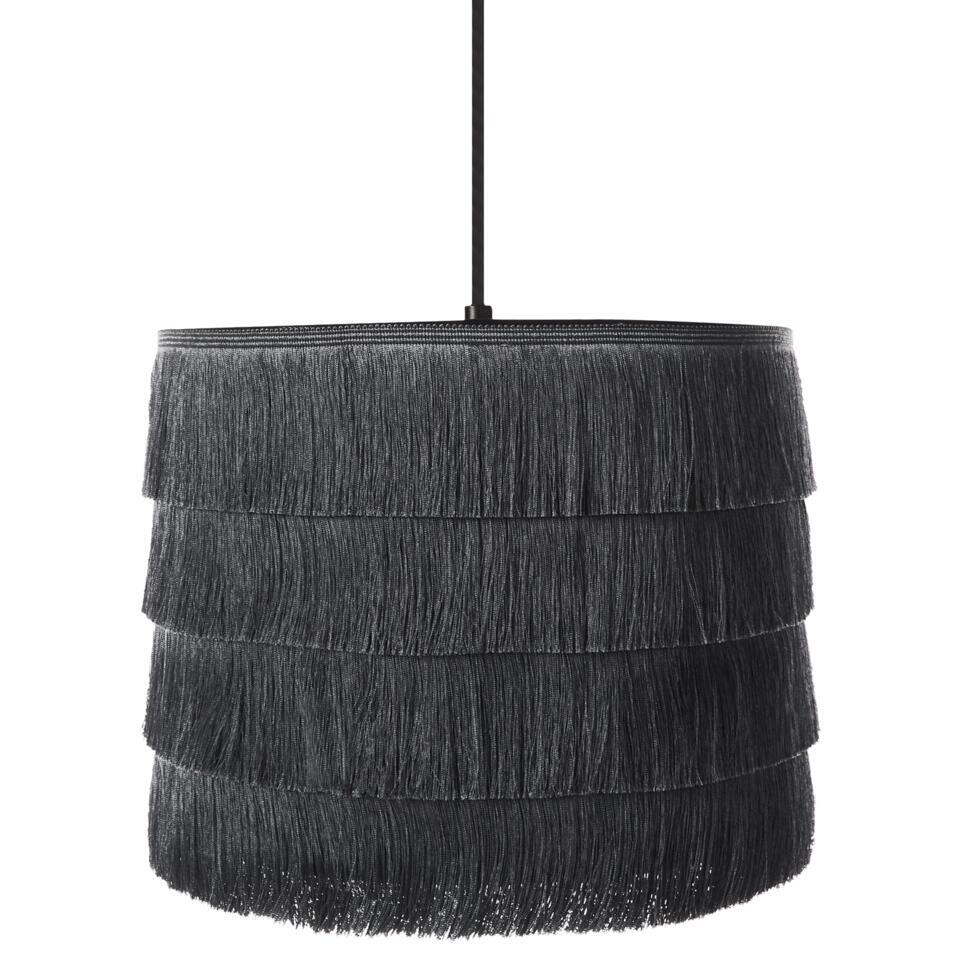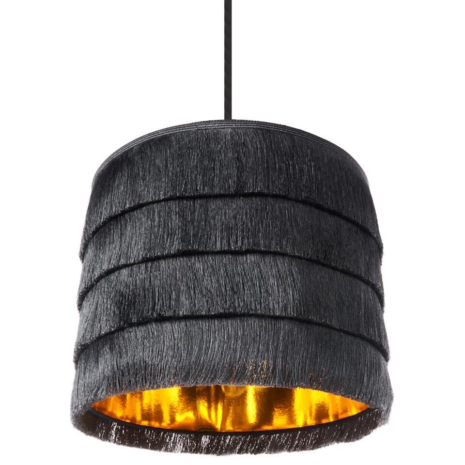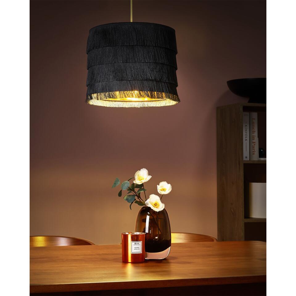 Hangende lamp met franje lampenkap. Voeg een vleugje boho elegantie toe aan je interieur met deze opvallende hanglamp. De lampenkap is prachtig versierd met franjes van zachte polyester stof, waardoor een dynamische en getextureerde look ontstaat die elke kamer verfraait. De rijke tinten van de franjes passen prachtig bij de zachte gloed van het licht en zorgen voor een gezellige en uitnodigende sfeer. Deze lamp is perfect voor eetkamers, woonkamers of slaapkamers en is zowel functioneel als stijlvol, waardoor het een opvallend stuk is in elke inrichting.
