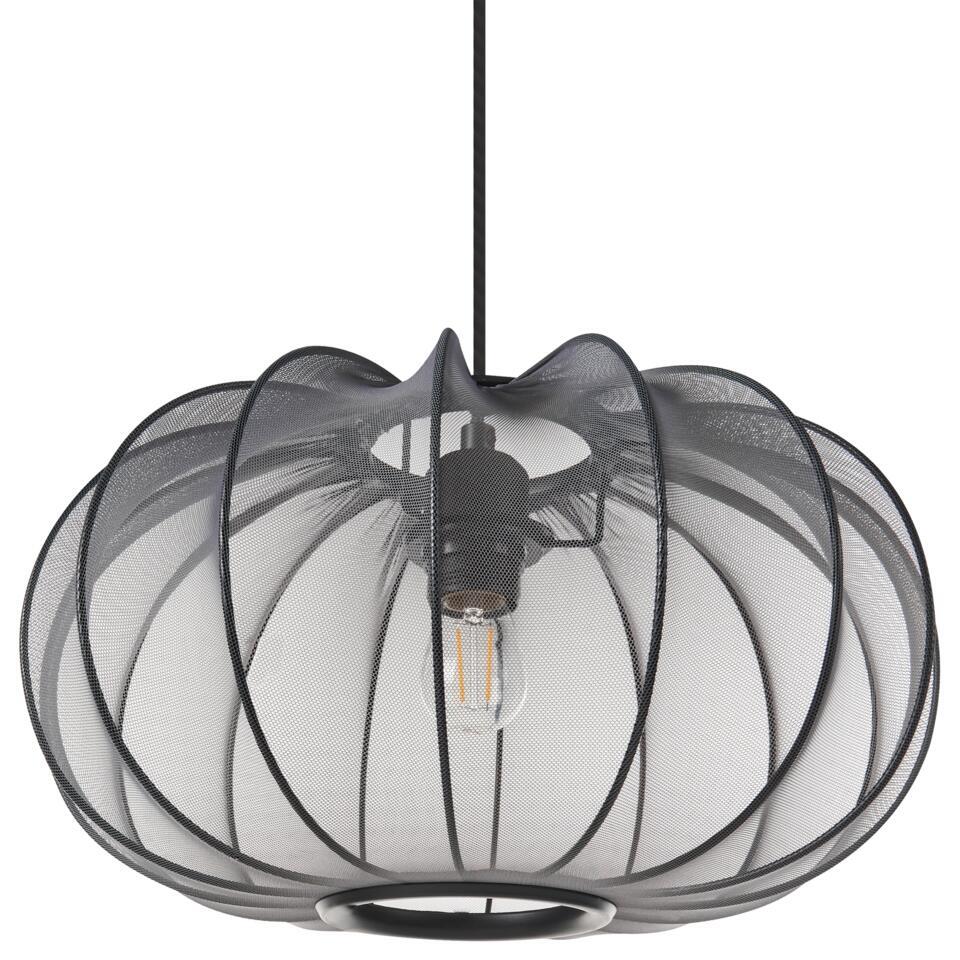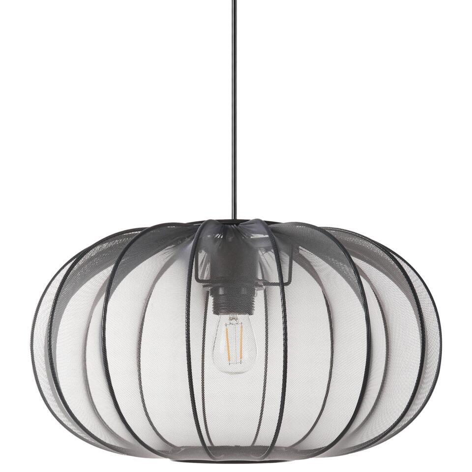 Hangende lamp met nylon lampenkap. Breng een zachte en natuurlijke charme naar je eetkamer of woonkamer met deze elegante hanglamp. De lamp heeft een kap van getextureerd nylon met subtiele plooien en biedt een lichtgewicht en duurzaam ontwerp dat het licht zachtjes verspreidt voor een warme, uitnodigende gloed. Het afgeronde silhouet voegt een vleugje eenvoud en moderne verfijning toe, waardoor de lamp perfect past in zowel minimalistische als eigentijdse interieurs. Ideaal om een rustige en gezellige sfeer te creëren.