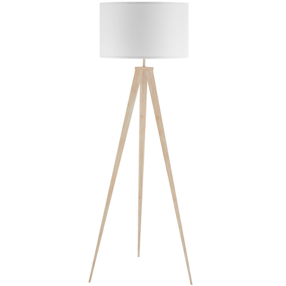 tectake Staande lamp Lunaris, textielkap, driepootsframe, Eiken