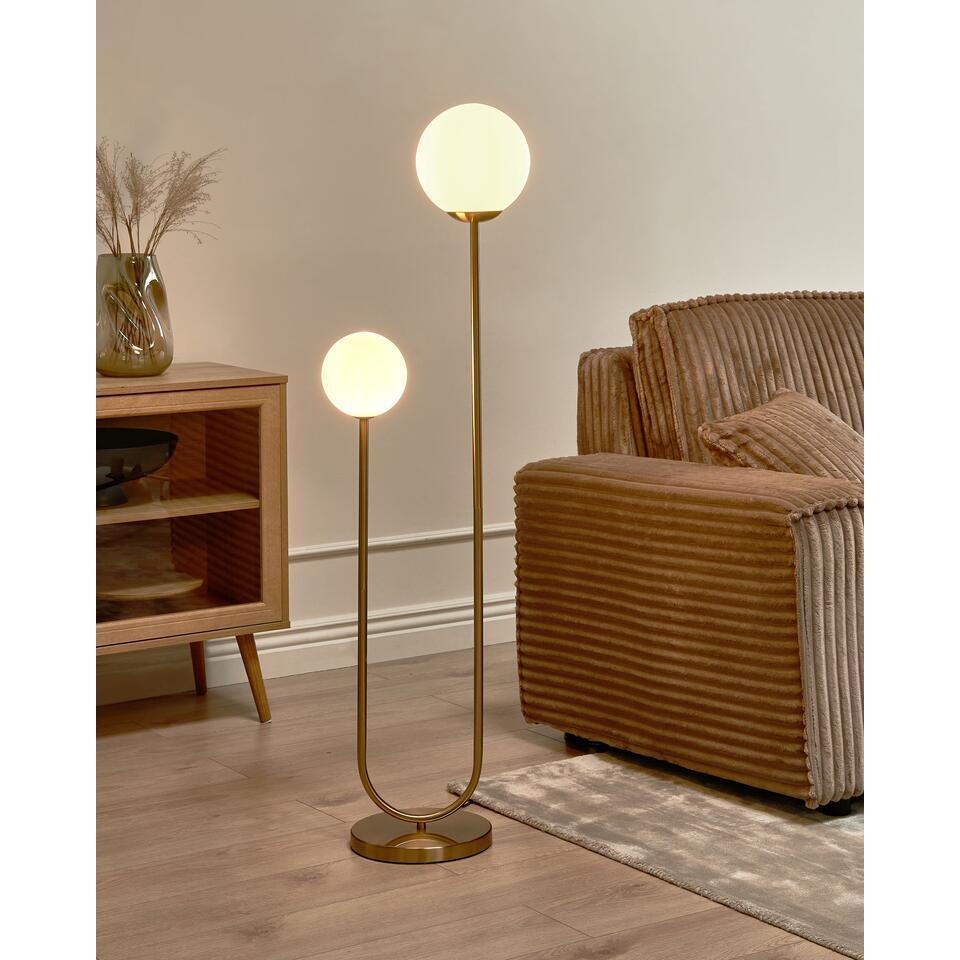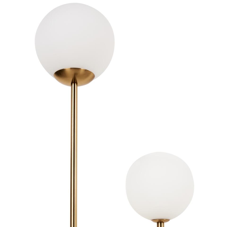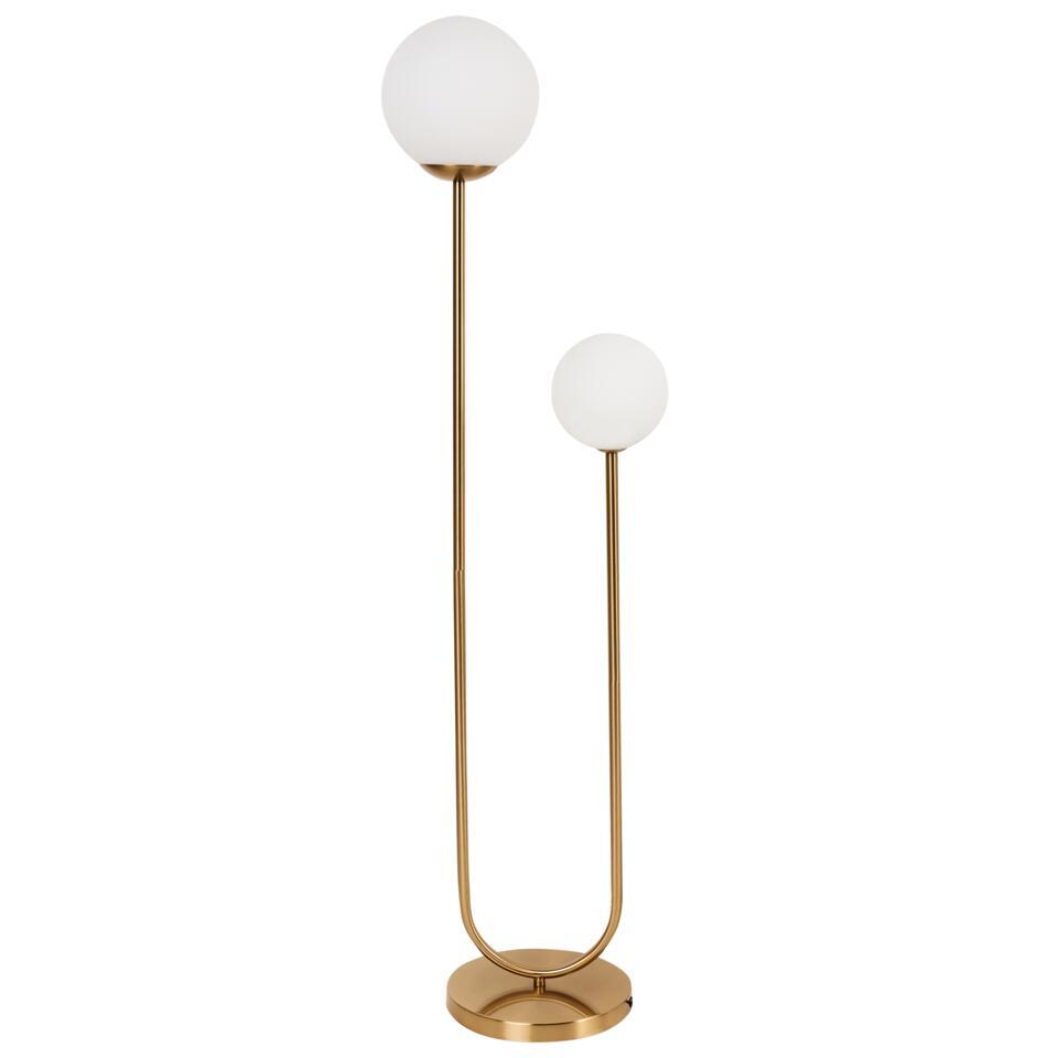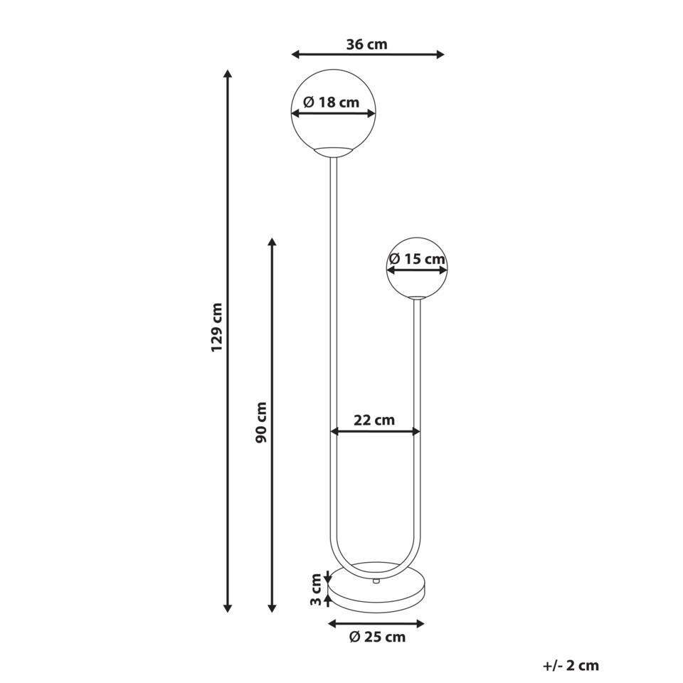 Glamour staande lamp. Breng een vleugje glamour in je huis met deze elegante staande lamp. Hij is ontworpen met twee glazen kappen, en verspreidt een zacht, subtiel licht dat perfect is voor zowel woonkamers als slaapkamers. Zijn opvallende ronde vorm in combinatie met een metalen afwerking trekt de aandacht en wordt een opvallend element in elk interieur.