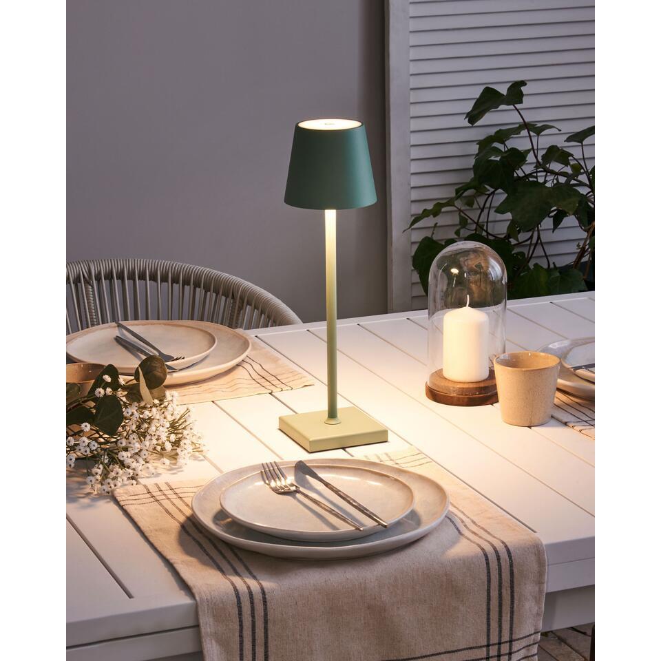 Moderne LED-lamp voor binnen en buiten. Geef je eetkamer een eigentijdse uitstraling met deze strakke groene tafellamp. De strakke, moderne lijnen passen bij verschillende inrichtingsstijlen, terwijl de zachte gloed warmte toevoegt aan je ruimte. Een must-have voor wie houdt van eenvoudige maar stijlvolle verlichtingsoplossingen.