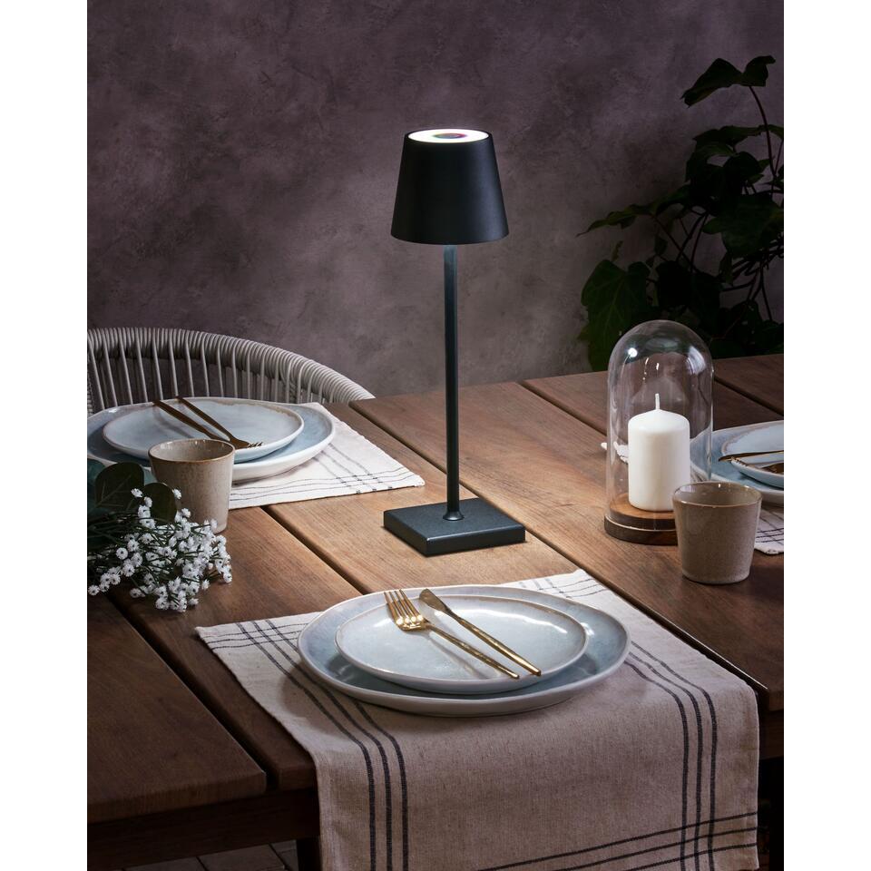 Draadloze LED-lamp. Verlicht je ruimte met deze chique, eigentijdse lamp. De strakke zwarte afwerking en het minimalistische ontwerp maken de lamp een perfecte aanvulling voor elke kamer en zorgen voor een rustige en gezellige sfeer. Ideaal om zacht, sfeervol licht toe te voegen aan je leeshoek of bijzettafel, terwijl je met de RGB-functie de verlichting kunt aanpassen aan je stemming.