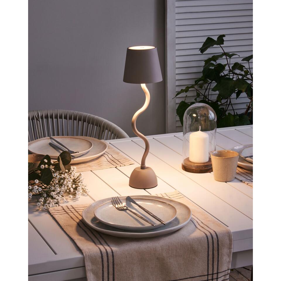 Moderne gebogen tafellamp. Geef een speelse draai aan je tafelschikking met deze uniek gebogen tafellamp met eenvoudig opladen via USB en een traploze dimfunctie. Het moderne, golvende ontwerp geeft een gevoel van plezier terwijl het precies de juiste hoeveelheid licht geeft voor intieme diners of gezellige avonden. Deze lamp is een chique toevoeging aan elke ruimte en combineert moeiteloos stijl en functie.