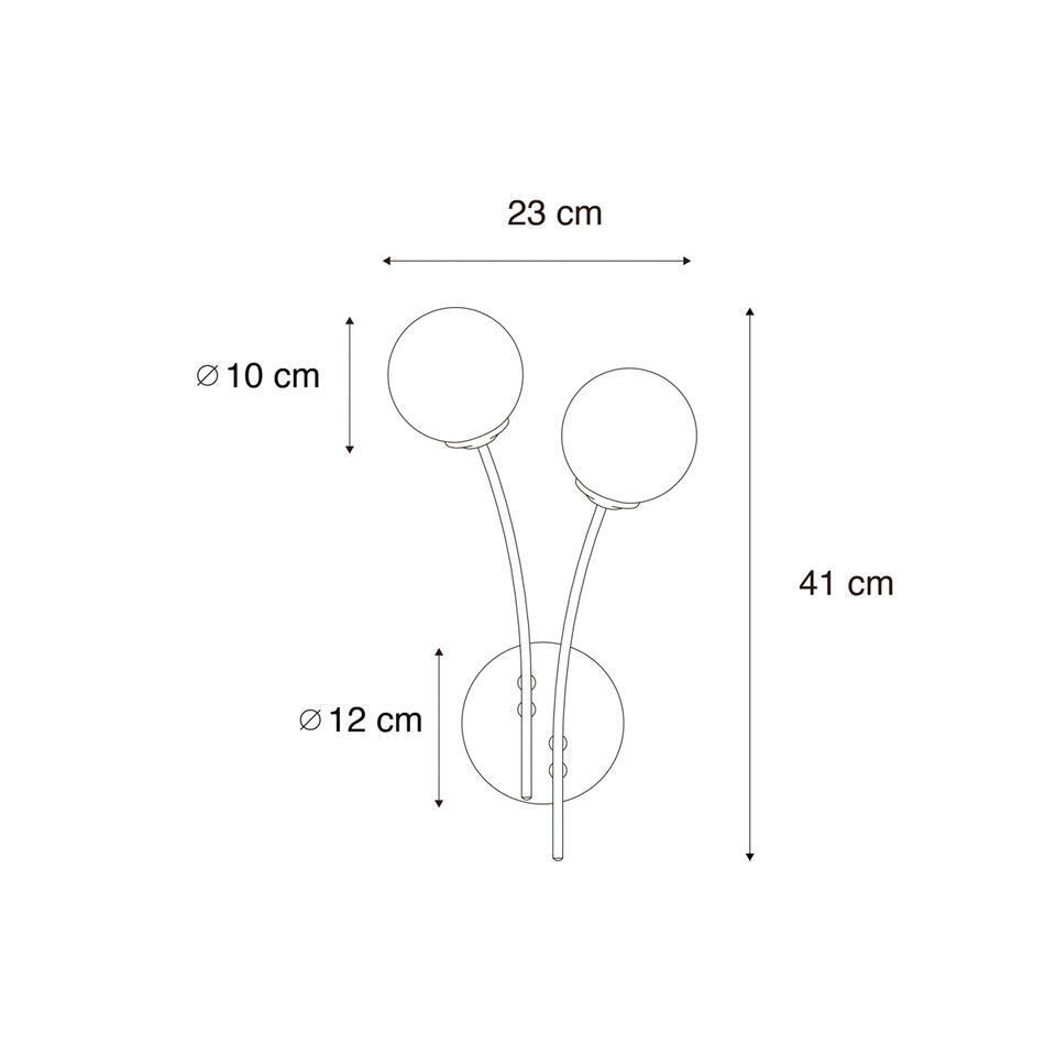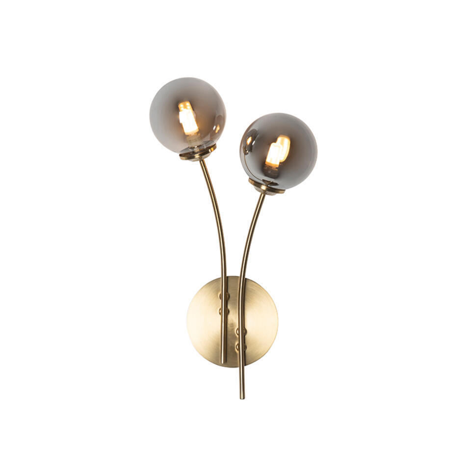 Wandlamp Athens is een vrolijke toevoeging voor jouw woonkamer, slaapkamer of hal! De twee lichtpunten lijken net op twee lichtgevende bloemen tegen de wand. De lamp is gemaakt van staal, afgewerkt in het goud met glas. Het glas heeft een smoke effect wat zorgt voor een prachtig lichteffect in de ruimte. Athens heeft een totale hoogte van 41 cm, diepte van 14,5 cm en lengte 23 cm. De montageplaat heeft een diameter van 12 cm en een hoogte van 2,5 cm. De glazen kappen hebben ieder een diameter van 10 cm. Je maakt de wandlamp compleet met 2 lichtbronnen die ieder beschikken over een G9 fitting (max. 28 Watt). Zorg dat je deze niet vergeet erbij te bestellen. Athens is dimbaar met een externe dimmer, deze is niet inbegrepen. Een zeer sfeervolle wandlamp met een modern randje. Athens is de wandlamp waar je naar op zoek bent!