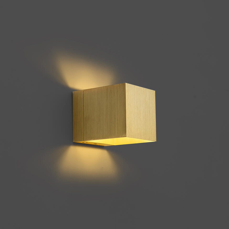 Breng luxe en warmte in huis met de Joris wandlamp in goud. Deze moderne kubusvormige lamp straalt klasse uit dankzij zijn elegante gouden afwerking, die direct een vleugje glamour toevoegt aan je interieur. De geïntegreerde LED-lichtbron (3000K) verspreidt een zacht, warm wit licht dat perfect is voor zowel functionele verlichting als het creëren van een gezellige sfeer. Met de handige touch dimmer stel je de lichtsterkte eenvoudig af op ieder moment: van subtiele gloed tot helder licht. Compact en stijlvol, de Joris is ideaal voor in de woonkamer, slaapkamer of hal. Laat je muren stralen en geniet van een harmonieus samenspel van design en comfort.