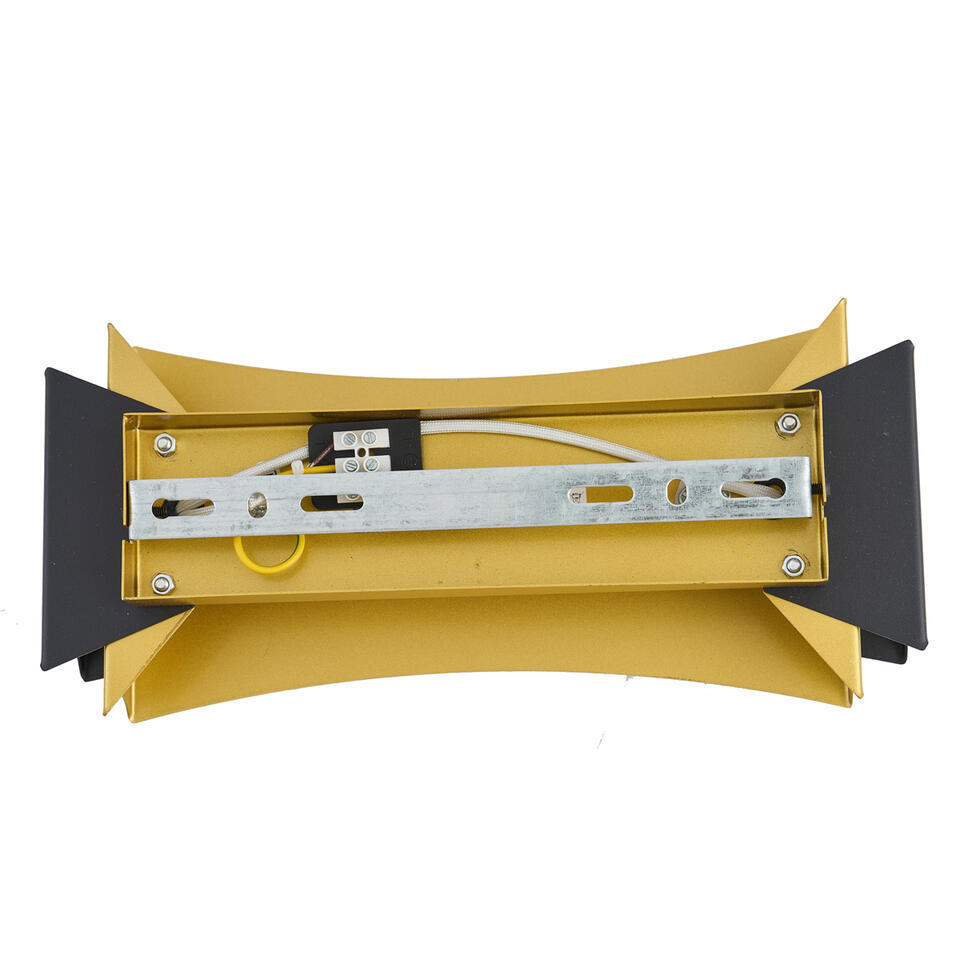 Plats is een strakke en moderne wandlamp die perfect past in de woonkamer, slaapkamer of in de hal. Hij is gemaakt van metaal en is zwart met goud. De gouden binnenkant creëert een warm en gezellig lichteffect aan je muur. De wandlamp heeft een diepte van 8 cm, hoogte van 13 cm en lengte van 28,5 cm. De montageplaat heeft een hoogte van 7 cm en lengte van 24 cm. Je maakt Plats compleet met twee lichtbronnen met G9 fitting (max. 40 Watt), deze moet je er nog los bij bestellen. De lamp is dimbaar met een externe dimmer (let op: niet inbegrepen). Geef je interieur een opkikker met de moderne wandlamp Plats!