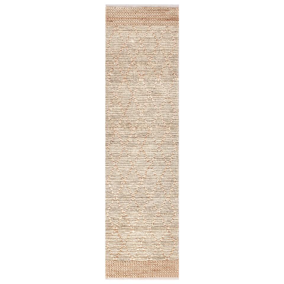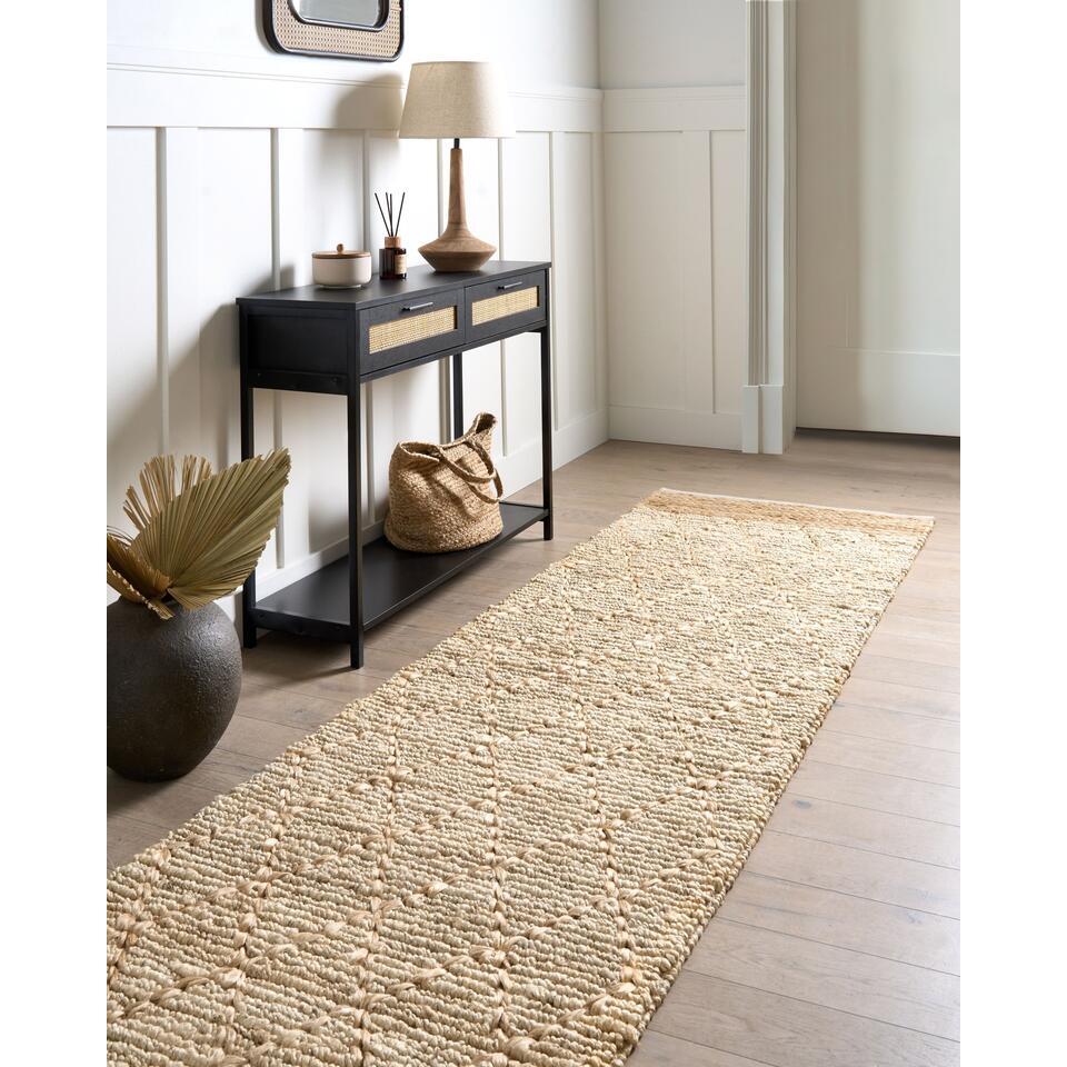 Handgemaakt loper tapijt. Verfris je huis met een trendy boho vibe met dit tapijt. Het is handgeweven van jute en heeft een unieke kleurencombinatie, waarbij de natuurlijke, beige kleur van het materiaal wordt gemengd met een groene tint, waardoor het opvalt en de aandacht trekt. Het accessoire is zeer duurzaam en heeft geen dagelijks onderhoud nodig om jarenlang mee te gaan. Het kan ook worden gecombineerd met verschillende interieurstijlen, waardoor het een universeel decorstuk is.