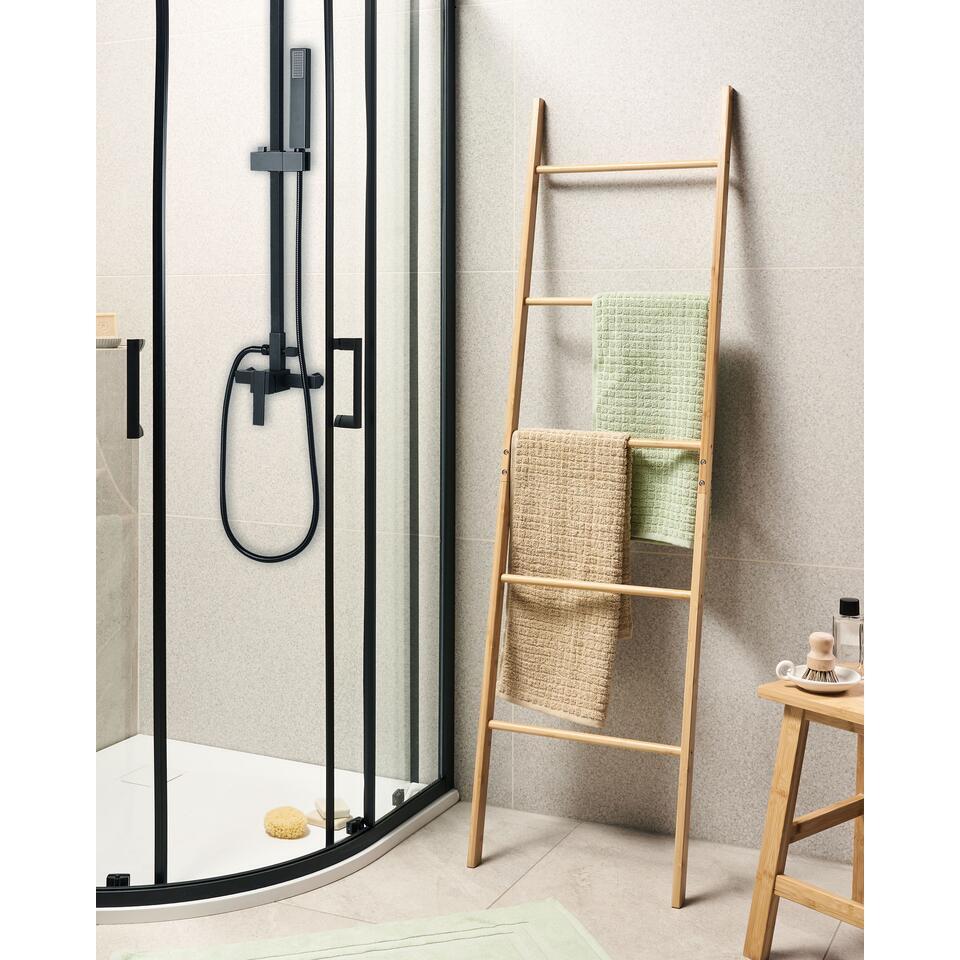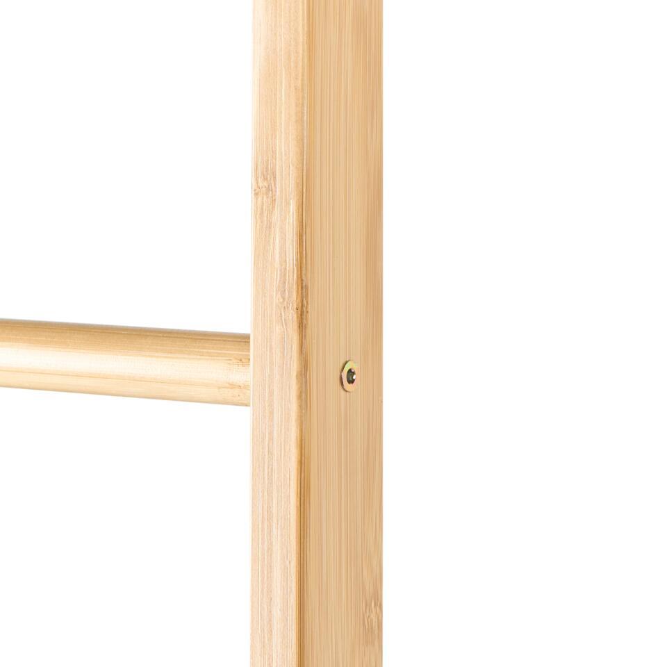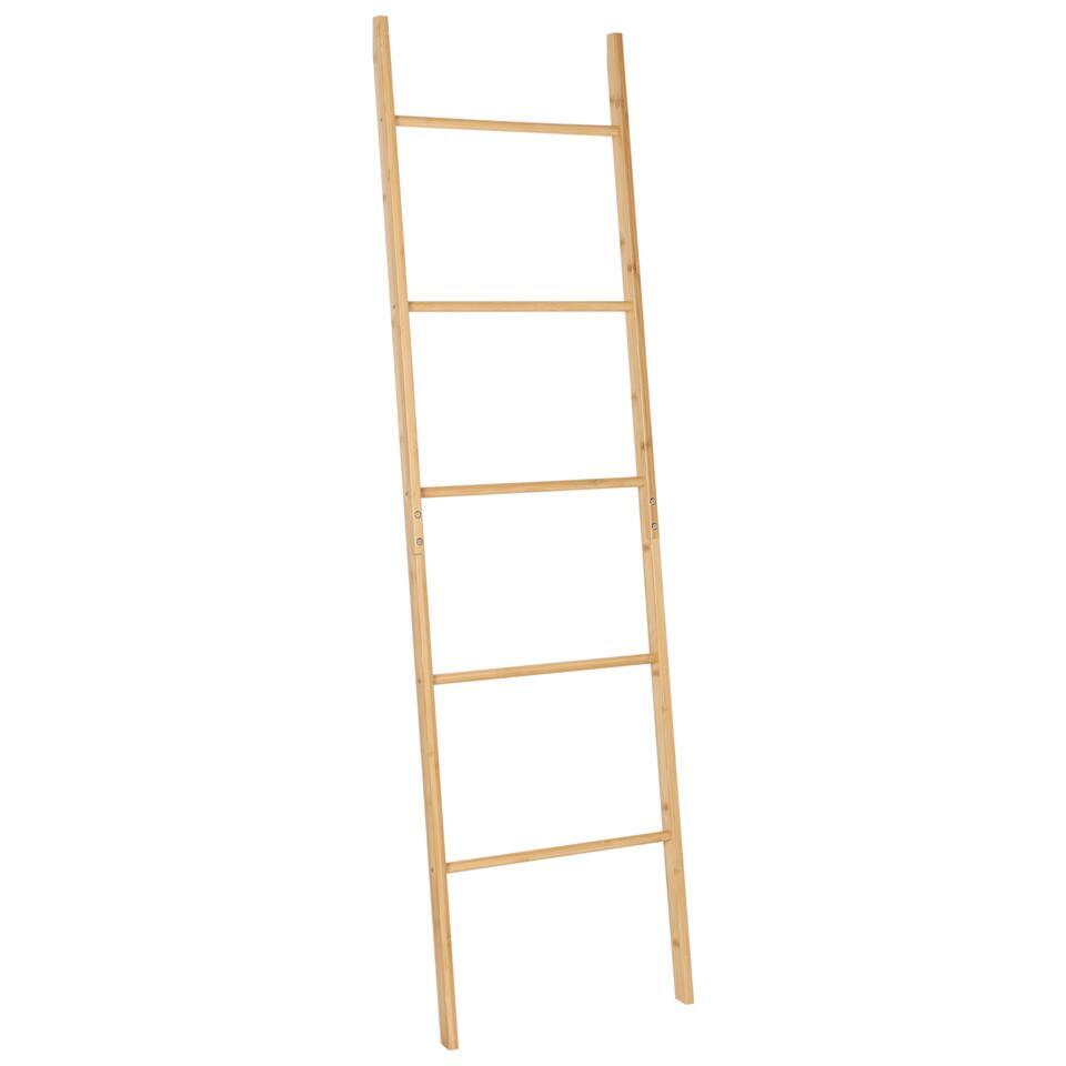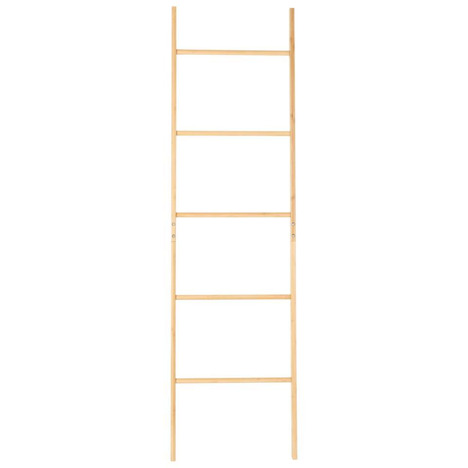 Houten ladder handdoek rek. Geef je badkamer of slaapkamer een upgrade met dit stijlvolle leunende bamboe handdoekenrek. Met vijf stevige treden is het perfect voor het ophangen en drogen van handdoeken of kleding en voegt het een natuurlijk tintje toe aan je ruimte. Het slanke houten ontwerp leunt moeiteloos tegen de muur en bespaart ruimte zonder dat je hoeft te boren. Ideaal om je spullen op te bergen, te drogen of gewoon op een chique en praktische manier tentoon te stellen.