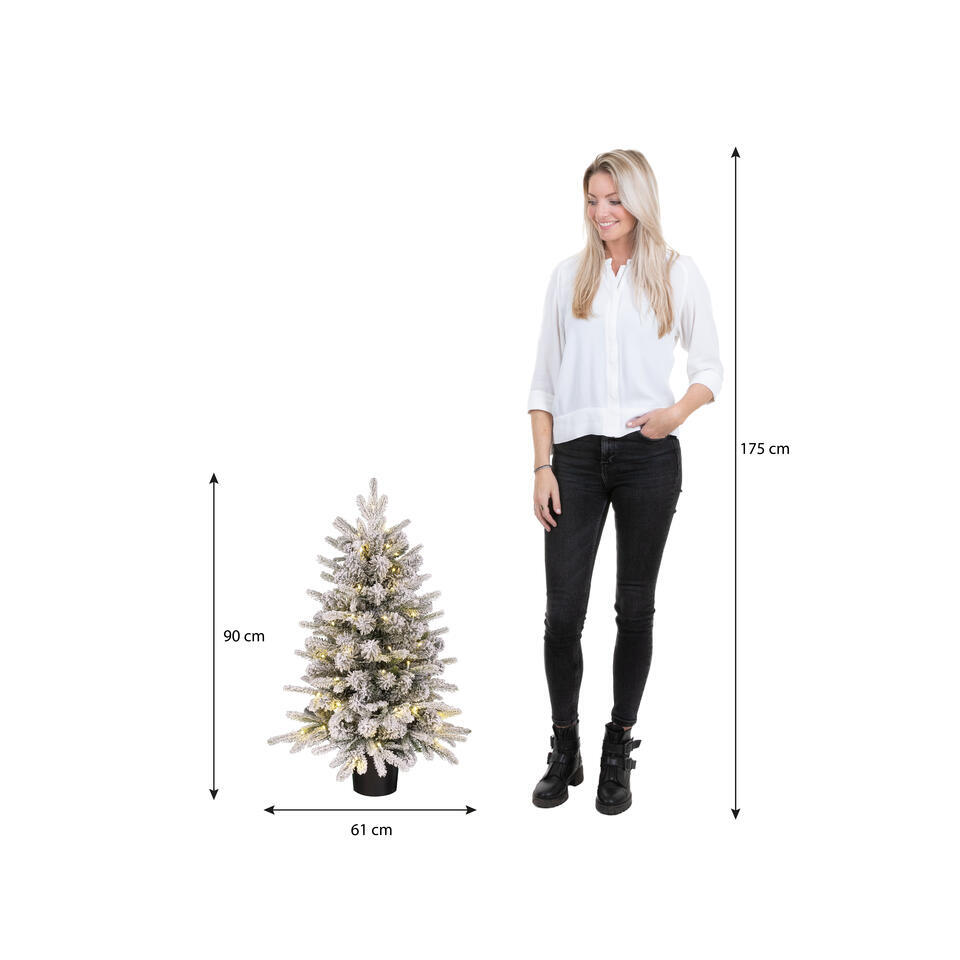 Beschrijving- Besneeuwde kunstboom die direct een winterse en sfeervolle uitstraling geeft