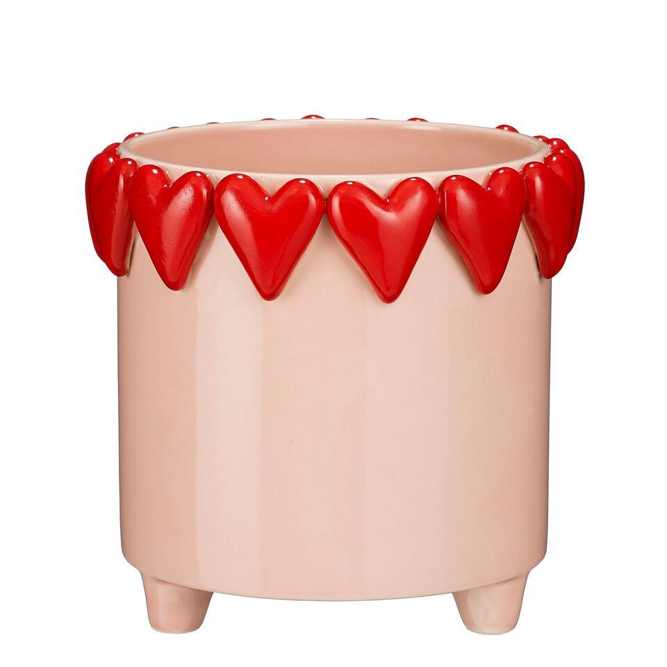 - Met een hoogte van 18 cm en een diameter van 21 cm biedt deze roze bloempot met hartjes voldoende ruimte voor jouw favoriete planten