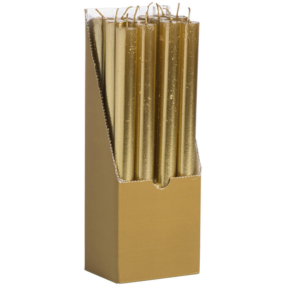 Deze rustieke dinerkaars in goudkleur straalt warmte en sfeer uit. Met een lengte van 25 cm en een diameter van 2,1 cm biedt de kaars een langere brandduur en een opvallende, elegante uitstraling op tafel. Het gebruik van paraffine zorgt voor een stabiele en rustige vlam, waardoor je geniet van een sfeervol en uitnodigend licht tijdens elk moment. De goudkleurige afwerking geeft een tijdloze en luxe uitstraling die gemakkelijk te combineren is met diverse interieur- en tafeldecoraties. Als je op zoek bent naar een sfeervolle dinerkaars die lang brandt en een warme, luxe ambiance creëert, dan is deze rustieke goudkleurige kaars een goede keuze.