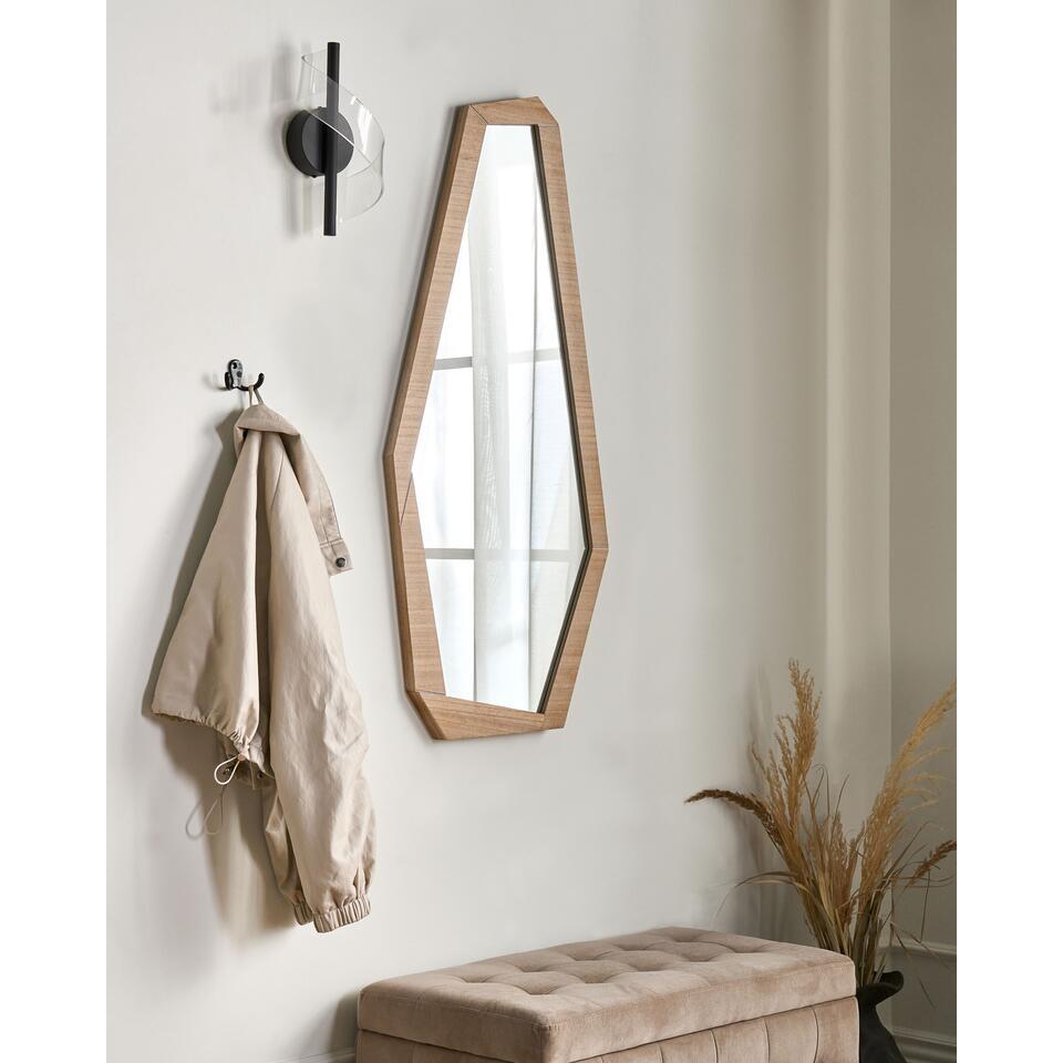 Moderne onregelmatige wandspiegel. Breng een vleugje moderne elegantie in je interieur met deze wandspiegel met een unieke vorm. Hij valt op dankzij een asymmetrische lijst in een natuurlijke lichtbruine tint, die perfect past bij zowel minimalistische als meer eclectische settings. Het is niet alleen een praktisch meubelstuk, maar ook een prachtige decoratie die karakter toevoegt aan elke ruimte, van de gang tot de woonkamer. De lichtgewicht constructie en twee ingebouwde haken maken ophangen moeiteloos, voor een snelle en eenvoudige verfrissing van het interieur.