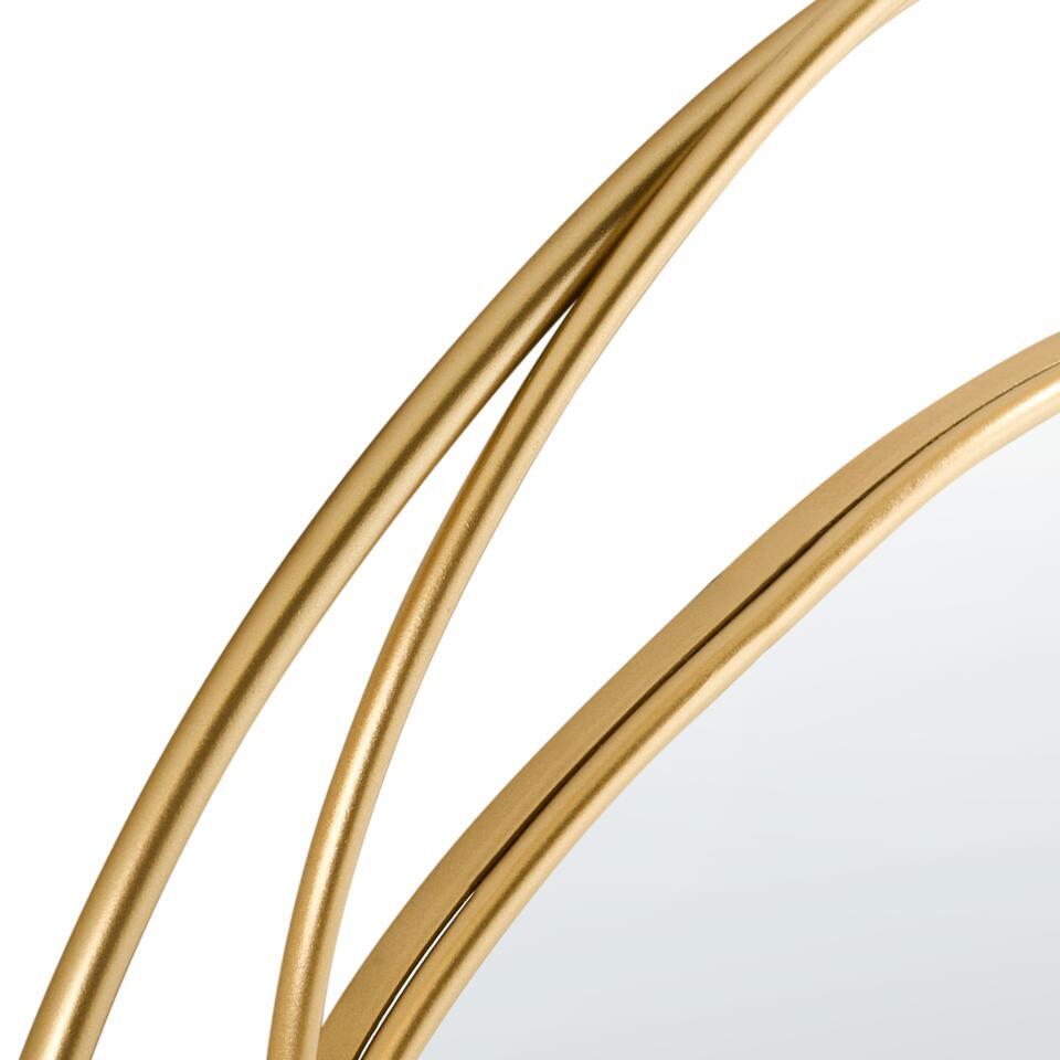 Decoratieve glamour spiegel. Verbeter de look van je kamer met deze prachtige wandspiegel die functionaliteit combineert met visuele kwaliteit. Het metalen frame bestaat uit onregelmatige, in elkaar gevlochten vormen die direct de aandacht trekken, terwijl de gouden kleur elegantie en glamour toevoegt aan elke ruimte. Het is niet alleen een reflecterend oppervlak, het is een statement stuk, perfect om boven een consoletafel of slaapkamerbadmeubel te hangen. Duurzame materialen zorgen voor een vlekkeloos uiterlijk gedurende jaren, terwijl de ingebouwde haak een snelle wandmontage mogelijk maakt en een onmiddellijke impact heeft op je interieur.