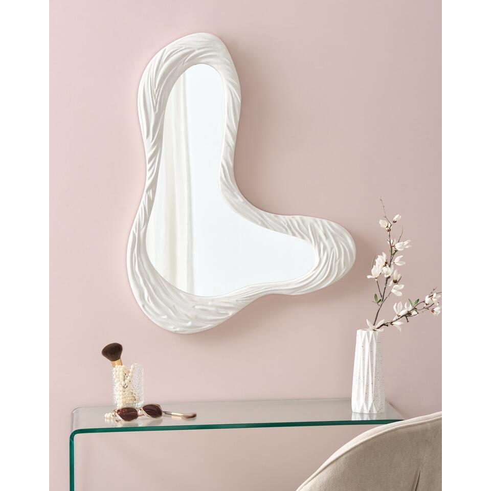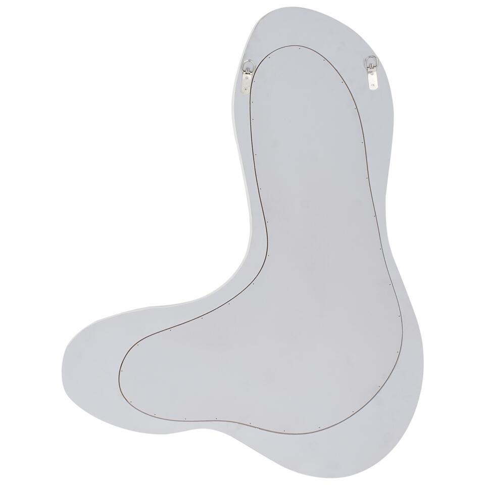 Asymmetrische decoratieve spiegel. Voeg een retro tintje toe aan je interieur met deze opvallende hangende spiegel. Het asymmetrische frame is handgemaakt van stevig MDF en afgewerkt in klassiek wit, zodat het bij verschillende interieurs past en een uniek karakter aan de ruimte geeft. De spiegel wordt geleverd met praktische haken aan de achterkant voor eenvoudige montage.