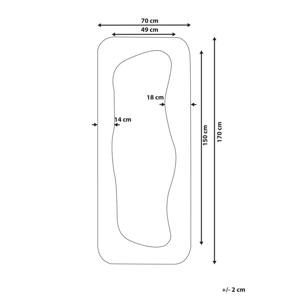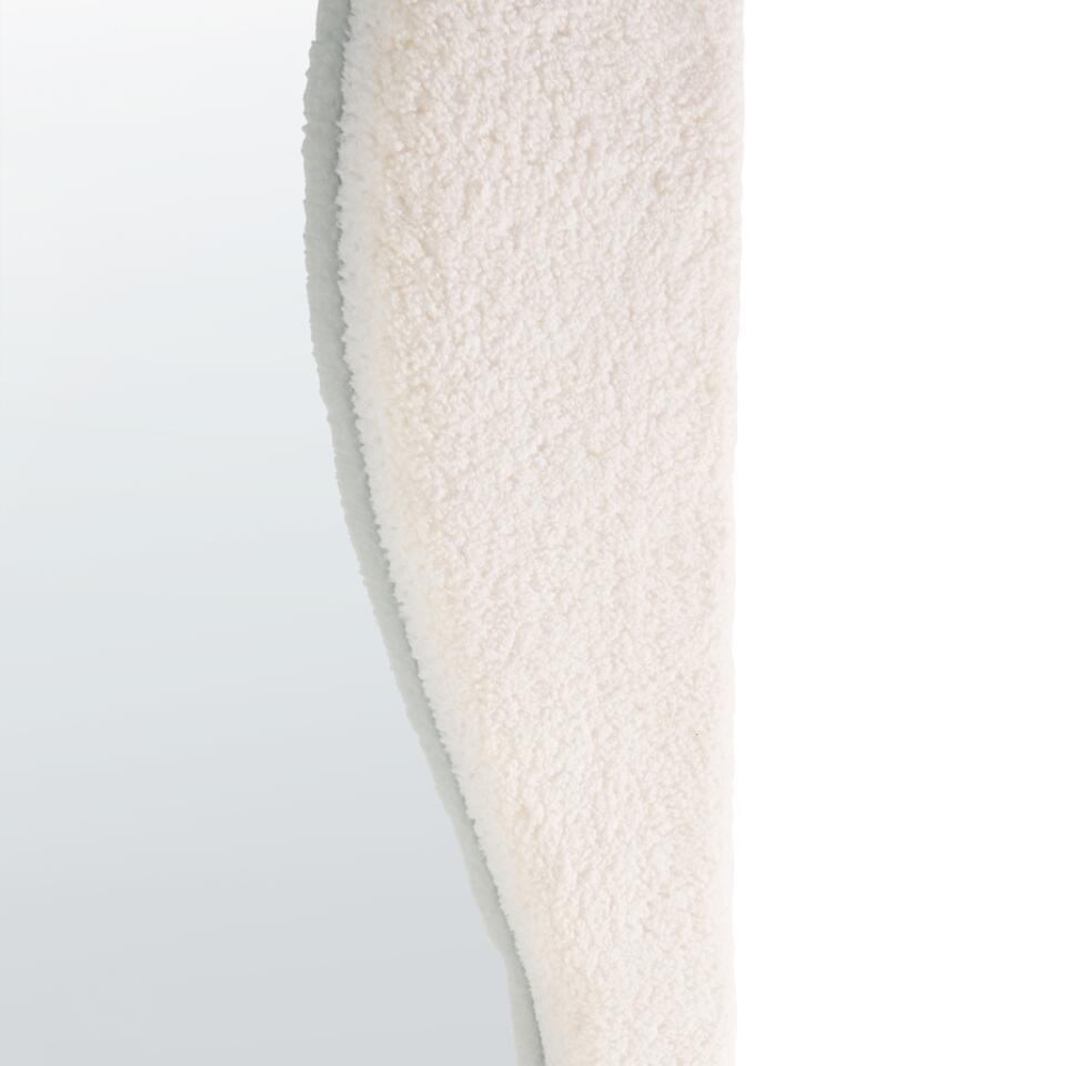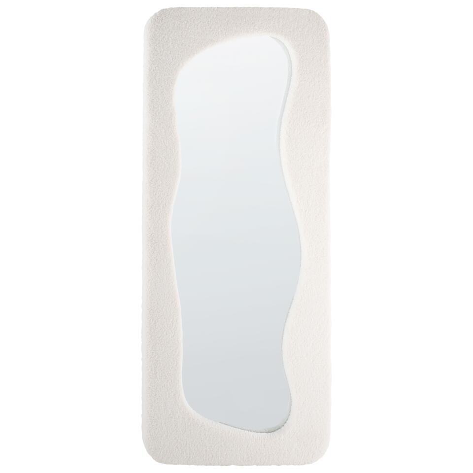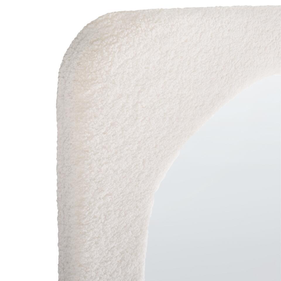 Wandspiegel met mooie lijst. Deze grote wandspiegel valt op door zijn onregelmatige, vloeiende vorm en gezellige frame in off-white teddystof. Hij is bekleed met een zacht textiel dat doet denken aan fleece en brengt zowel comfort als visuele interesse in interieurs. Perfect voor gebruik als passpiegel in een slaapkamer of kleedkamer, maar ook als stijlvol muuraccent in gangen of woonkamers. Het royale oppervlak helpt het licht in de kamer te weerkaatsen en kan kleinere ruimtes ruimtelijker doen lijken.