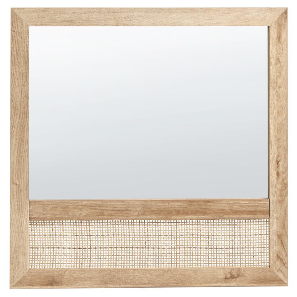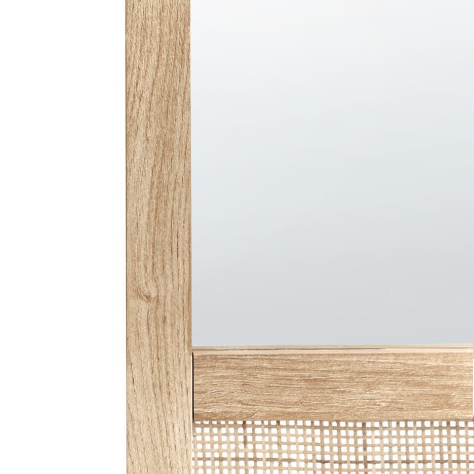 Decoratieve spiegel voor aan de muur. Voeg een vleugje natuurlijke elegantie toe aan je badkamer met deze stijlvolle spiegel. De spiegel heeft een duurzaam spaanplaat frame en wordt geaccentueerd met een rotan Weens vlechtdetail dat de warme en geweven look versterkt. Deze spiegel past perfect bij rotan of houten meubelen en creëert een samenhangende en uitnodigende badkamer. Het veelzijdige ontwerp combineert rustieke charme met moderne eenvoud.