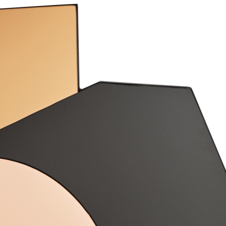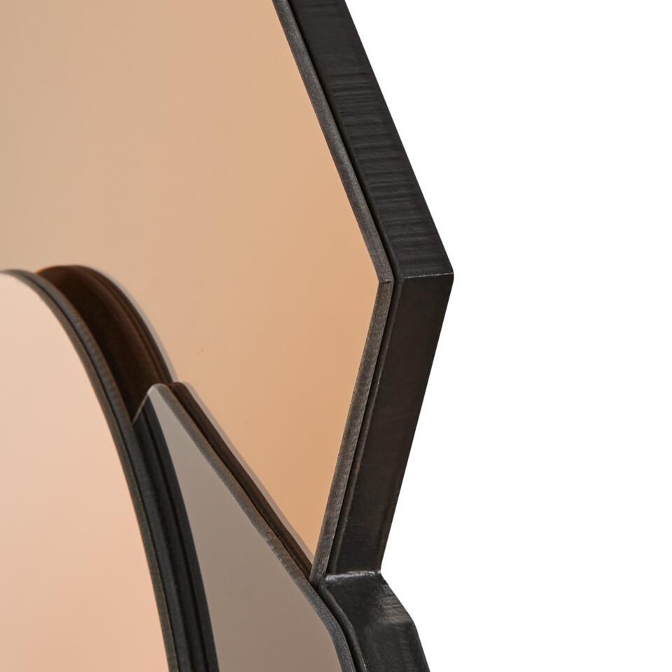 Spiegel in moderne stijl. Voeg een vleugje luxe toe aan je huis met deze glamoureuze spiegel, ontworpen in elegant roségoud, koper en zwart. De unieke vorm en het hoogwaardige glas maken er een prachtig decoratief stuk van. Perfect voor woonkamers, slaapkamers of gangen, met haken aan de achterkant om hem moeiteloos op te hangen. Een stijlvolle keuze voor elk chic interieur.