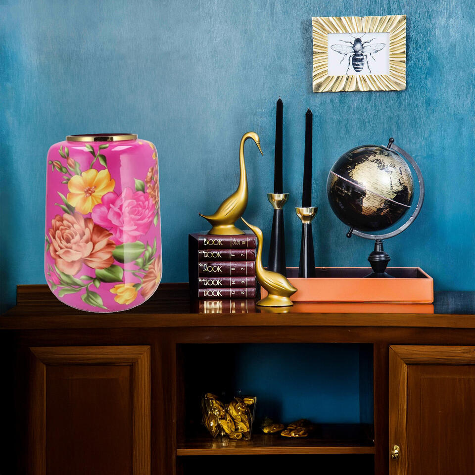 Breng een vleugje lente in huis met deze charmante vaas uit de lower Bouquet-collectie. De bloemenvaas is uitgevoerd in een weelderige bloemen print, en tilt ieder vers of kunstbloemen boeket naar een hoger niveau. Gemaakt van hoogwaardig metaal en een echte eyecatcher in ieder interieur. Deze vaas is ideaal voor droog- en zijdebloemen. Wil je liever verse bloemen? Gebruik dan een binnenvaas om de levensduur van de vaas te verlengen.