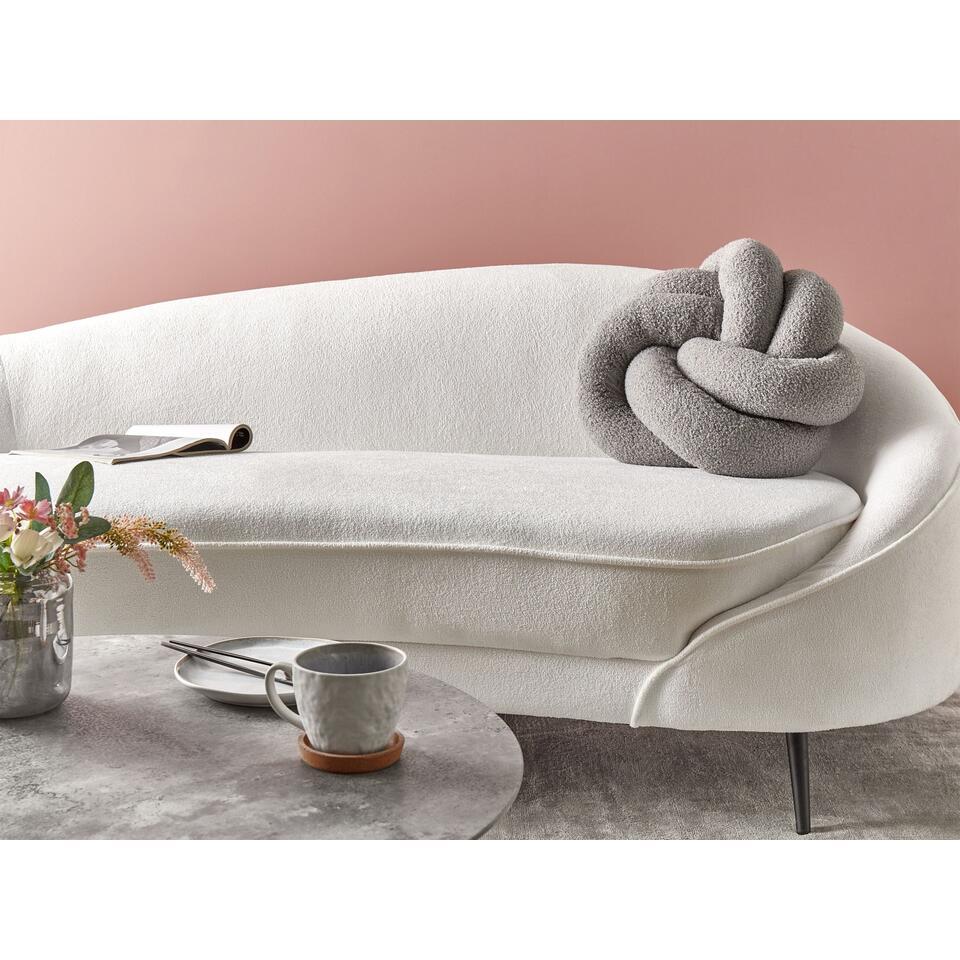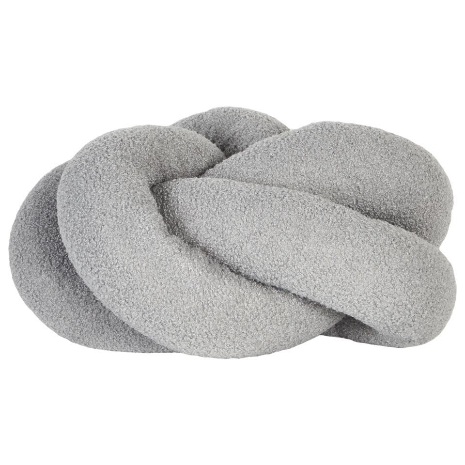 Decoratief knoopkussen. Dit speelse kussen in de vorm van een knoop geeft een leuke en moderne draai aan je inrichting. Het is gemaakt van zachte, gestructureerde stof en biedt zowel comfort als een uniek visueel element, perfect om de stijl van je bank of fauteuil te versterken. Het sculpturale ontwerp voegt een gedurfde en eigentijdse touch toe aan elke woonruimte, waardoor het een ideaal accentstuk is voor moderne interieurs.