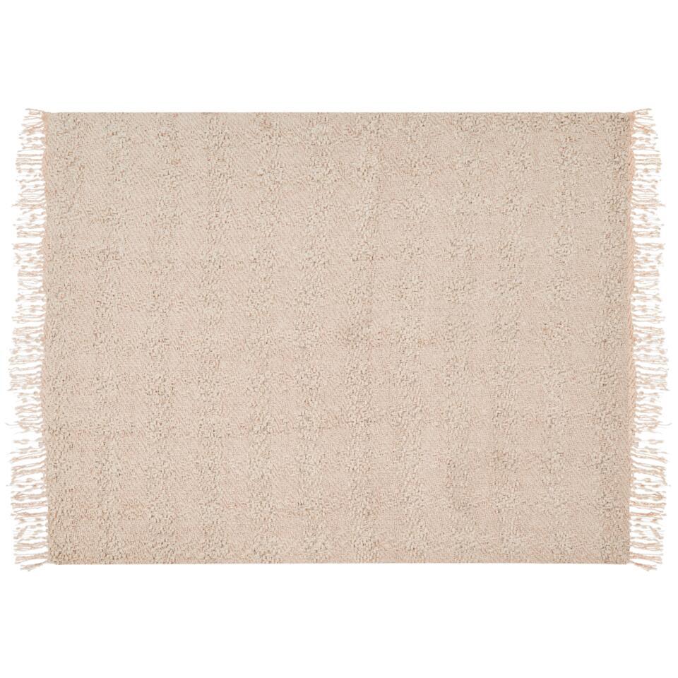 Geweven plaid met kwastjes. Deze deken van zacht katoen met acryl is een must-have voor elk knus interieur. De geweven, lusachtige textuur, gecombineerd met speelse kwastjes, geeft het een boho vibe. Het kleed is licht beige met een lichte roze tint - een subtiele, rustgevende kleur die een zachte warmte toevoegt aan elk interieur. Of je nu lekker knus op de bank zit of een laagje warmte aan je bed toevoegt, deze deken houdt je het hele seizoen warm en comfortabel.