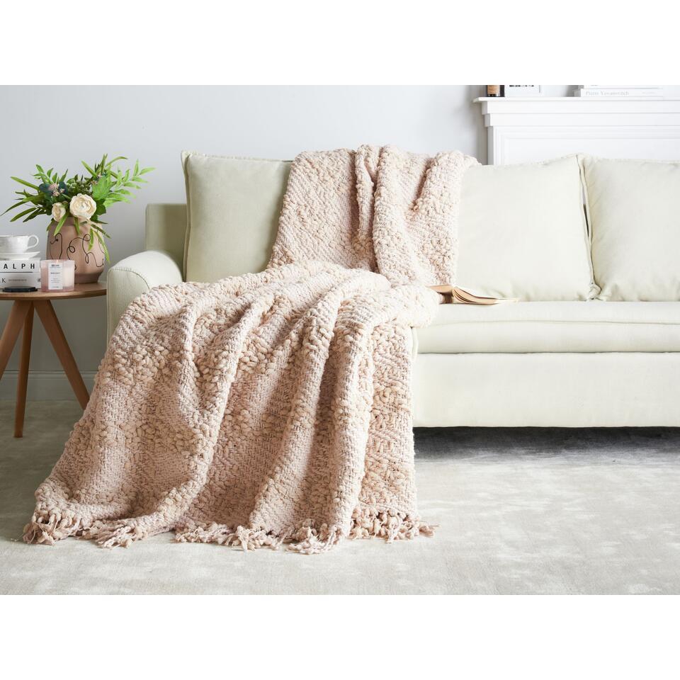 Geweven plaid met kwastjes. Deze deken van zacht katoen met acryl is een must-have voor elk knus interieur. De geweven, lusachtige textuur, gecombineerd met speelse kwastjes, geeft het een boho vibe. Het kleed is licht beige met een lichte roze tint - een subtiele, rustgevende kleur die een zachte warmte toevoegt aan elk interieur. Of je nu lekker knus op de bank zit of een laagje warmte aan je bed toevoegt, deze deken houdt je het hele seizoen warm en comfortabel.